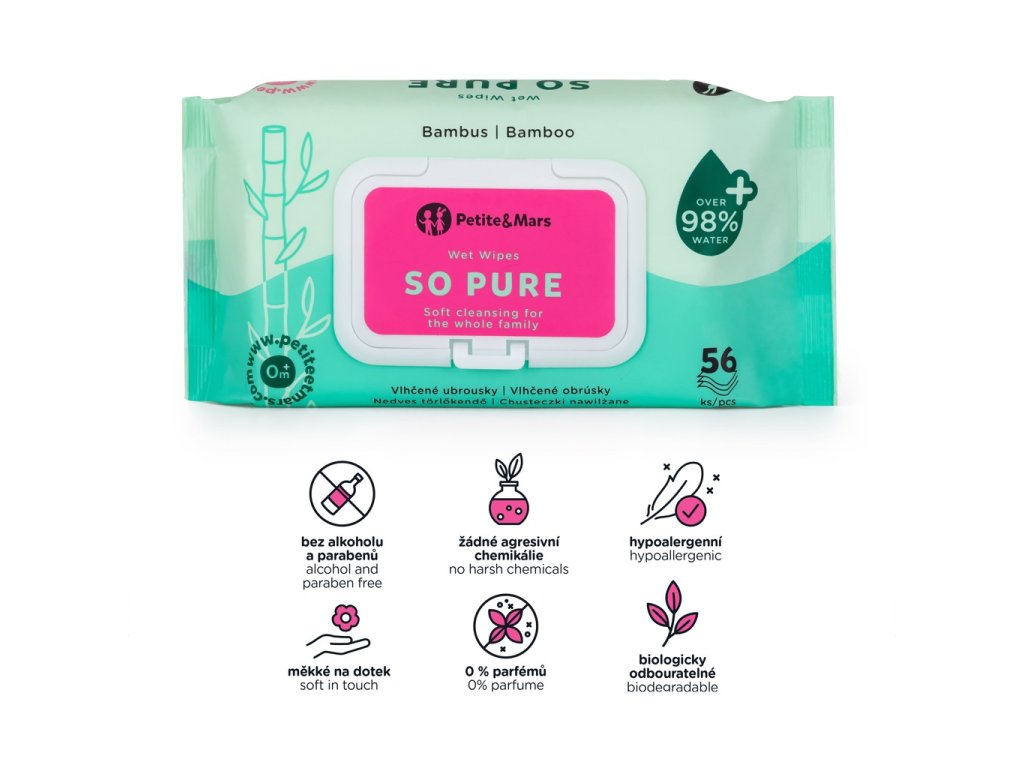 PETITE&MARS Ubrousky vlhčené SO PURE bambusové bioodbouratelné 4x 56 ks