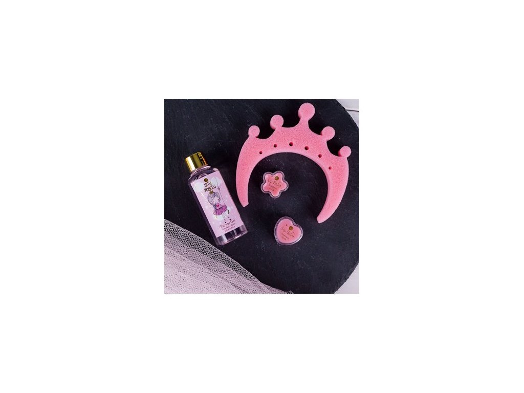 Obsah: bublinková koupel 80ml, balzám na rty 2x3g, houba na mytí ve tvaru korunky.