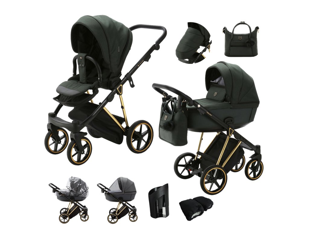 ADAMEX Belissa Special Edition Dark Green/Gold Kočárek kombinovaný