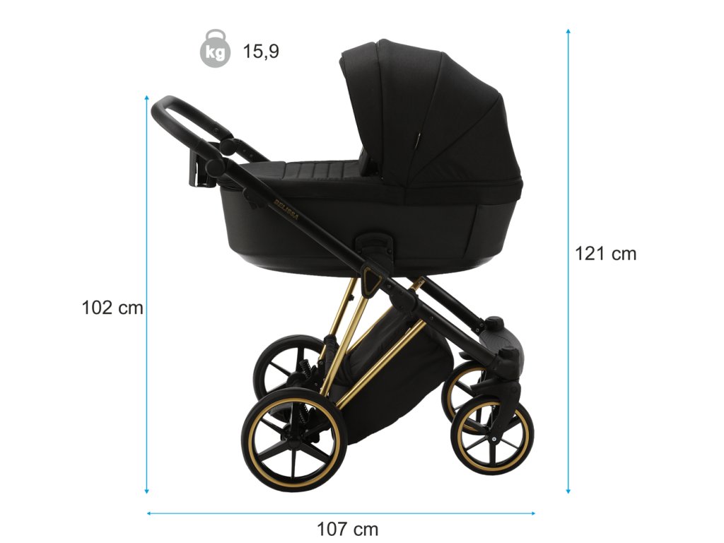 - rozměry rozloženého kočárku: 107 x 58 x 102-121 cm (D x Š x V)