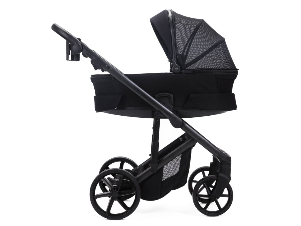 - Tento model se vyznačuje plně odnímatelnou látkovou částí stříšky korbičky, která je zespodu tvořena vzdušnou moskytiérou. Kromě toho má korba dva větrací otvory na zip (vpředu a vzadu).