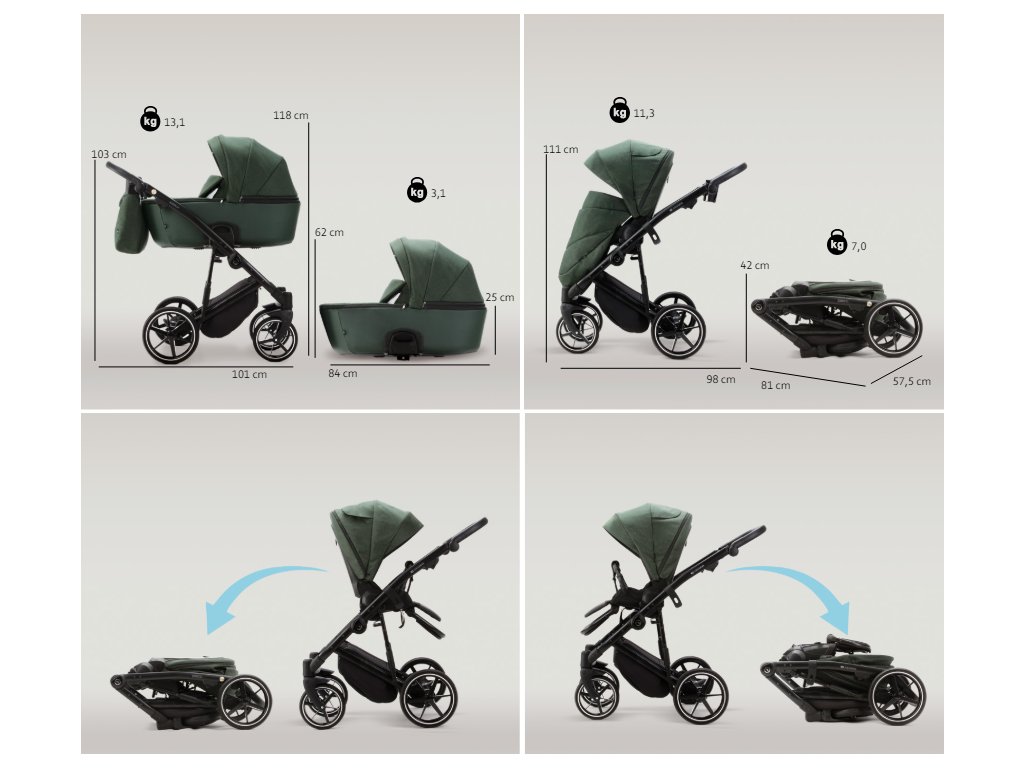 - rozměry složeného kočárku: 81 x 51 x 42 cm (D x Š x V)