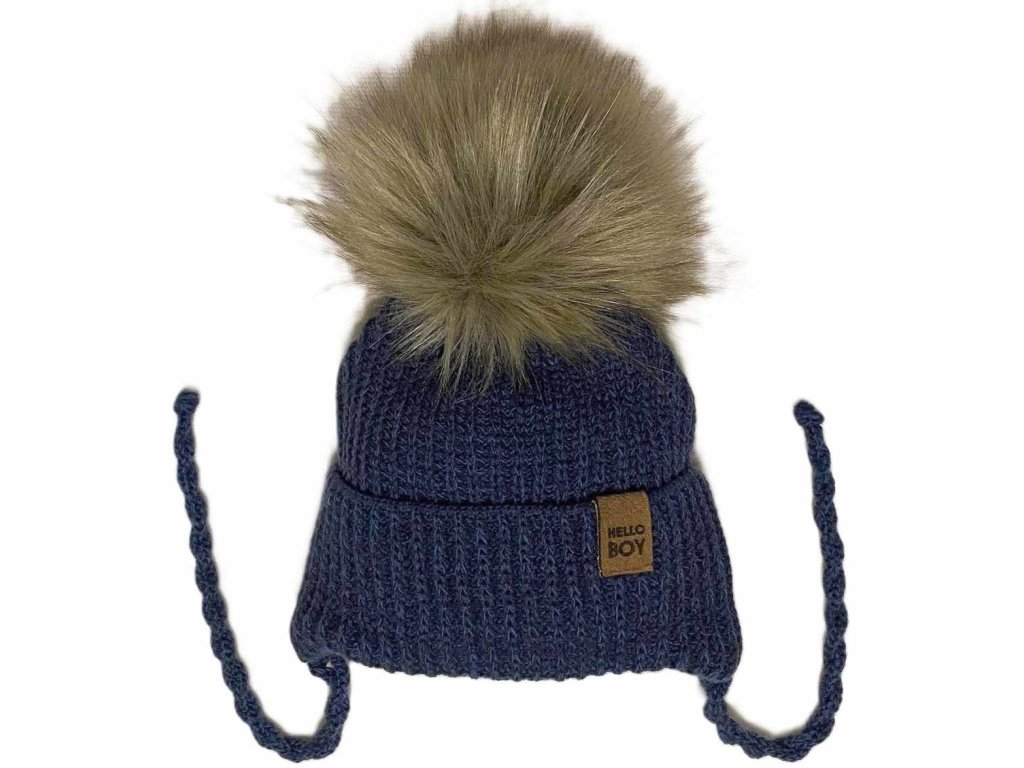 AJS Pletená zimní čepice s bambulí HELLO BOY Tmavě modrý melír vel. 36-38cm