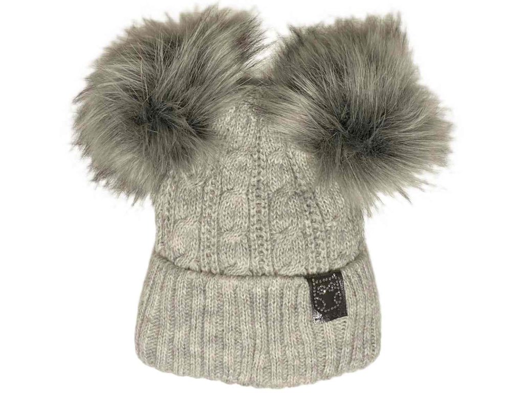AJS Zimní pletená čepice SOVA Šedá, 2 šedé bambule vel. 48-50cm