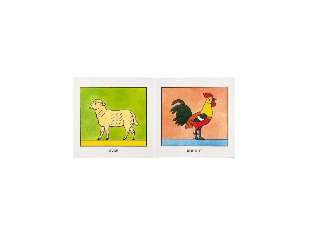 Malé rozkládací leporelo pro nejmenší: 12 stránek – 12 jednoduchých obrázků venkovských zvířat v barevných ilustracích Josefa Lady.