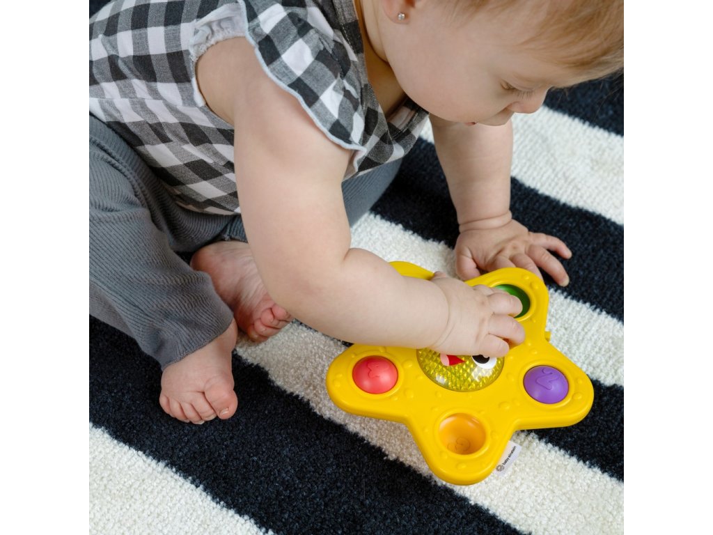 S hračkou s přísavkou Baby Einstein Ocean Explorers Pop & Glow Starfish se děti naučí příčinu a následek a získají smyslové dovednosti. Tato poutavá hračka obsahuje 5 bublinek, které rozvíjejí jemnou motoriku dítěte, a silnou přísavku, která umožňuje hvězdici držet a otáčet se na hladkých površích. Dítě se rádo naučí barvy a čísla od 1 do 5 na každém z knoflíků bublin a jejich jemným otáčením se hvězdici rozsvítí obličej. Ideální pro zapojení smyslů, učení příčin a následků a rozvoj jemné motoriky doma nebo na cestách.