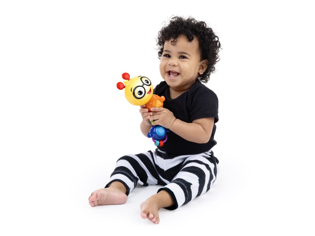Podporujte jemnou motoriku, senzorické učení a zábavu na cestách s housenkou Baby Einstein Twist-a-Pal Cal. Snadno uchopitelná, přenosná hračka pomáhá miminku objevovat různé textury a učit se princip příčiny a následku, když otáčí, mačká, točí a posouvá senzorické prvky na 4 segmentech housenky Cala. Otáčením hlavy a segmentů těla se ozývají klikání, také stisknutím trojúhelníkového tlačítka se rozsvítí housence tvář a přehraje více než 30 melodií a zvuků. Malé prstíky si zamilují posouvání korálků, dotýkání se hladkých tykadel, mačkání bublinového tlačítka nebo točení kuličky s chrastícím zvukem. Housenka zabaví miminko i na cestách a zároveň podpoří senzorické zkoumání, jemnou motoriku a učení příčin a následků. Určeno pro děti od 6 měsíců. Obsahuje 2 baterie typu AAA. Snadno se čistí. Rozměry: 16,92 cm x 12,7 cm x 6,35 cm. Vlastnosti - Senzorická hračka Baby Einstein Twist-a-Pal Cal učí jemnou motoriku a princip příčiny a následku, kdy dítě otáčí každý segment a objevuje hudbu, světla a různé textury. - Přenosná a snadno uchopitelná – dítě si zlepšuje dovednosti při mačkání bublinky, točení kuličky, posouvání korálků nebo otáčení segmentů, které vydávají klikavý zvuk. - Světla a zářivé barvy stimulují zrakový vývin; stisknutím trojúhelníkového tlačítka se přehraje více než 30 zvuků a melodií a rozsvítí se housence tvář; - Obsahuje 2 baterie typu AAA. - Vhodné pro děti od 6 měsíců; obsahuje postavičku Cala – housenku ze série Baby Einstein knih a pořadů; - Složení materiálu 85% plast, 15% kov - Věkové rozpětí uživatele 6 – 36 měsíců - Rozměry (cm) 18,4 cm (V) x 7,2 cm (Š) x 12,2 cm (D) Upozornění: Pouze pro použití v rámci jedné rodiny. Před odevzdáním produktu dítěti odstraňte veškerý obalový materiál a upevňovací prvky si uschovejte pro budoucí použití – obsahuje důležité informace. Adresa dodavatele: KIDS2 EUROPE BV 5 Keizersgracht 287, 1016 ED Amsterdam, Netherlands;