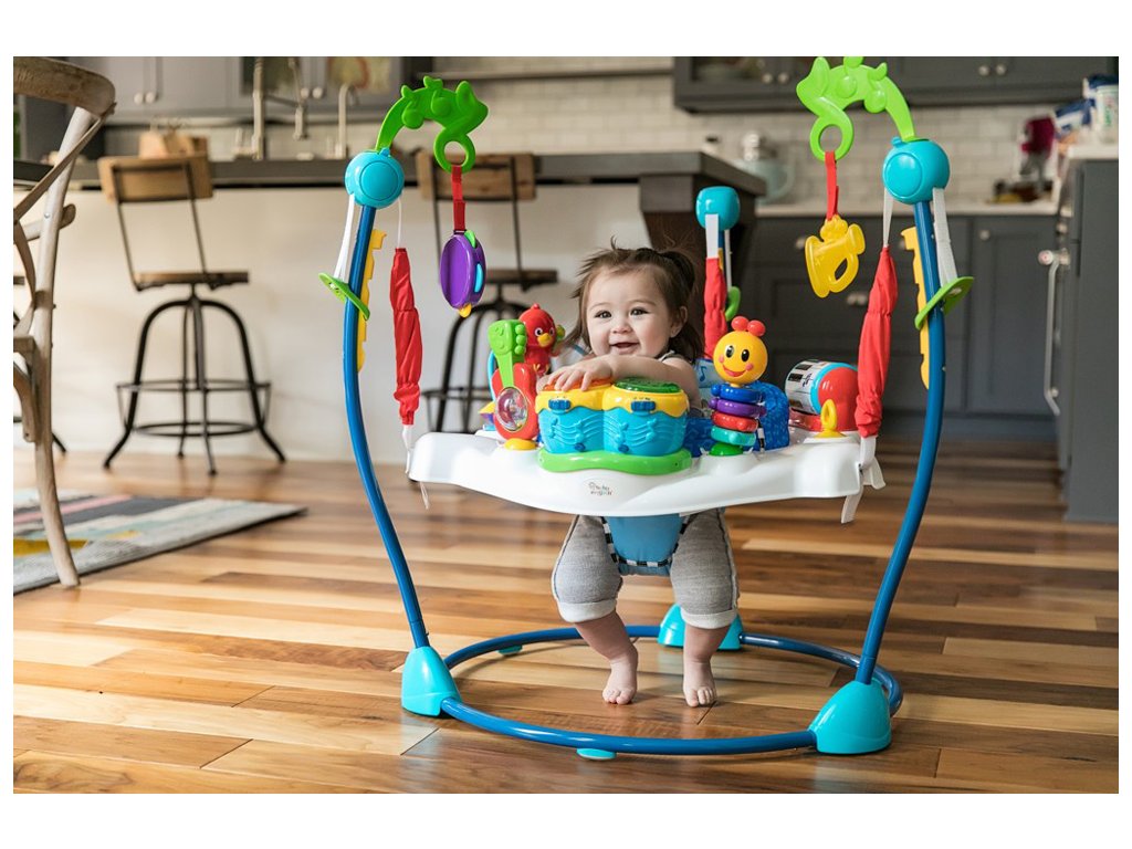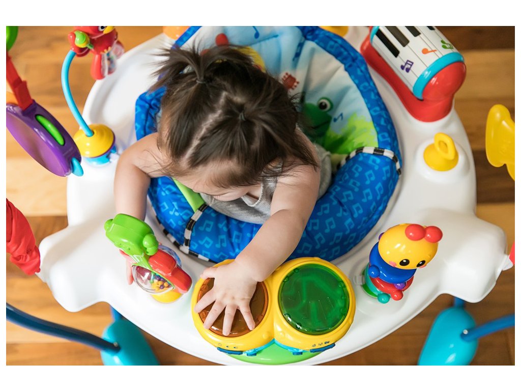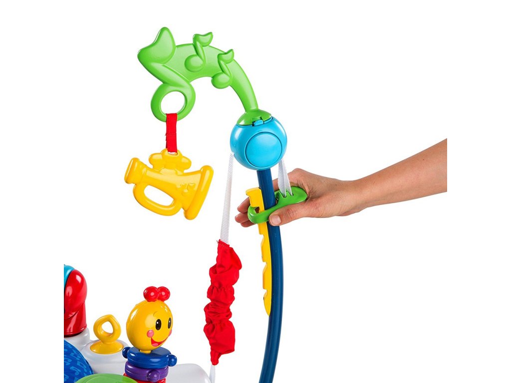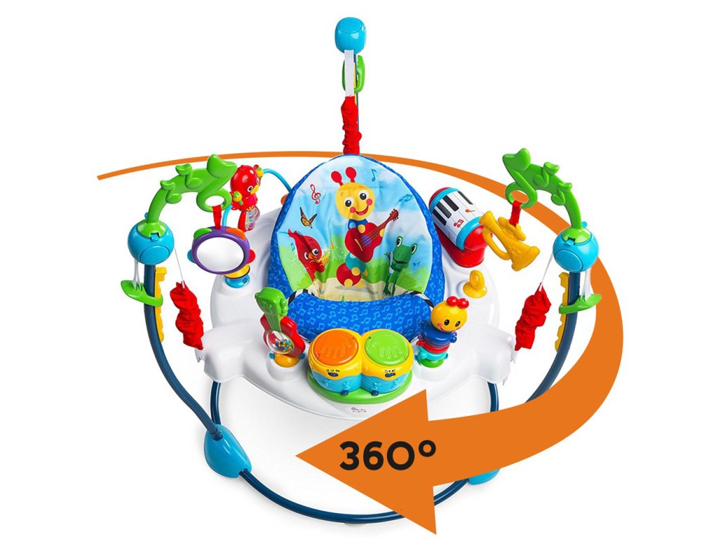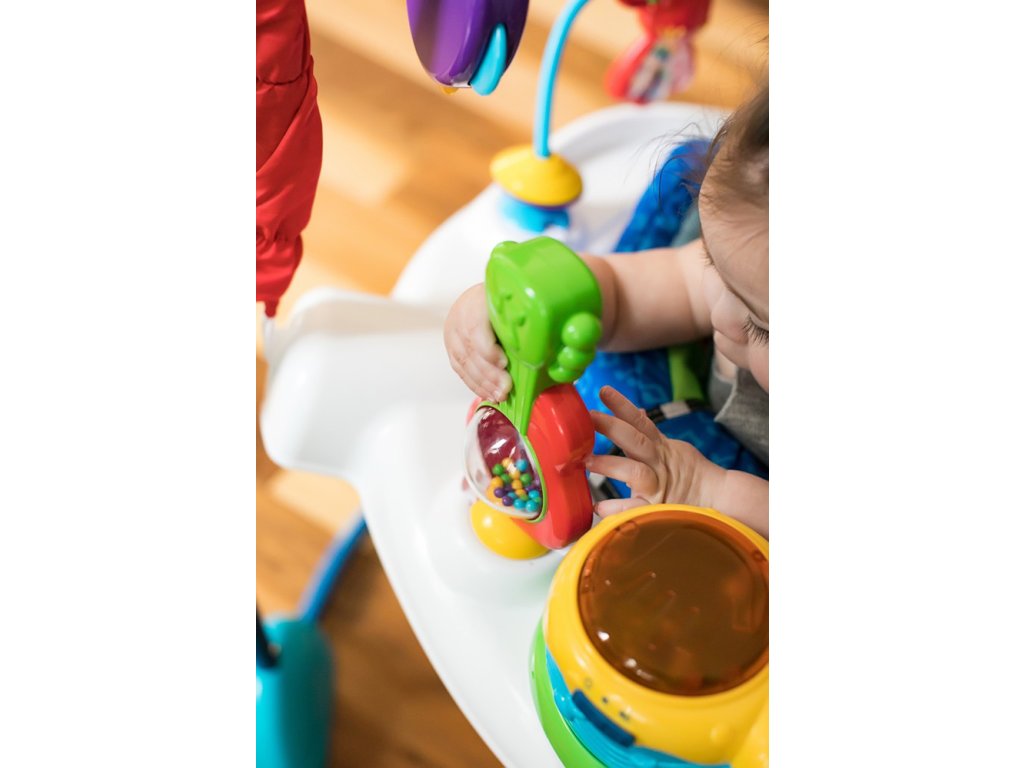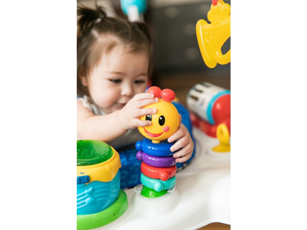 Nechte hudbu, aby se stala múzou vašeho dítěte a proměnila ho v malého umělce. Malé ručičky mohou klepáním na elektronické bubny bongo aktivovat světla, zvuky a několik jazyků. Dítě může otáčet klavírem ve tvaru válce a vydávat překvapivé zvuky nebo hrát na kytaru a roztančit barevné korálky. Bezpečné zrcátko s tamburínou podporuje sebepoznání dítěte. Toto jedinečné dětské hopsadlo se otáčí o 360°, takže váš malý hudebník může přecházet mezi jednotlivými aktivitami a zábava nikdy nekončí, protože stále objevuje nové činnosti.