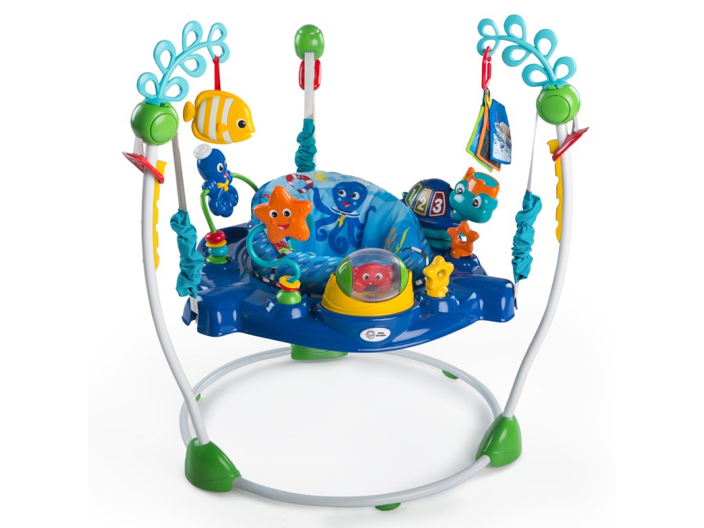 - Skákadlo 2v1 pro děti od 6 měsíců do 1 roku, které podporuje smyslové objevování světýlky, hudbou a zvuky oceánu.