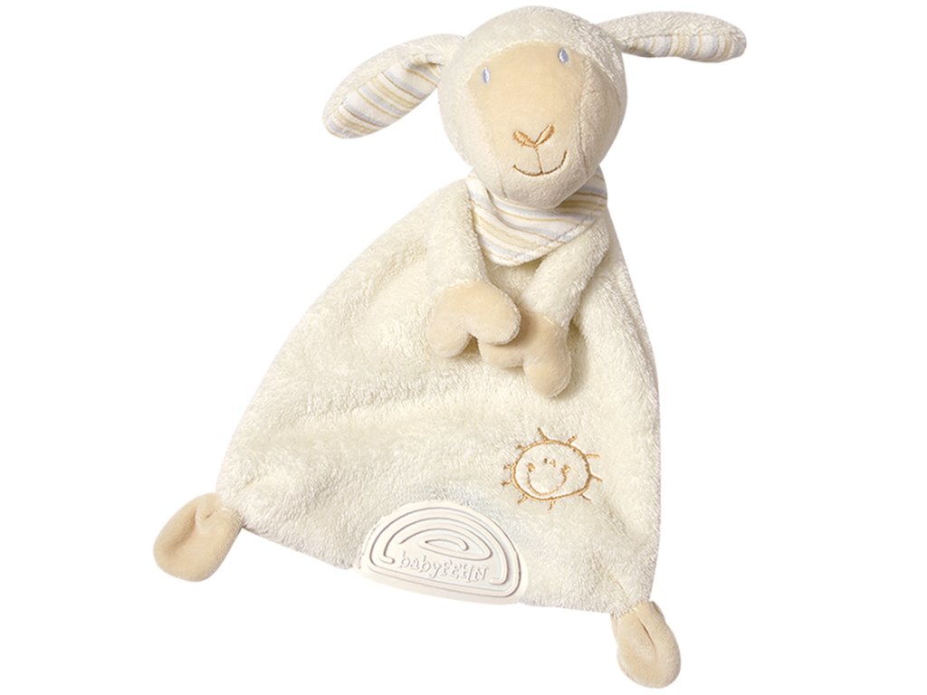 Roztomilá ovečka- muchláček s integrovaným kousátkem. V příjemných jemných barvách je muchláček vhodný jak pro holčičku, tak pro chlapečka.