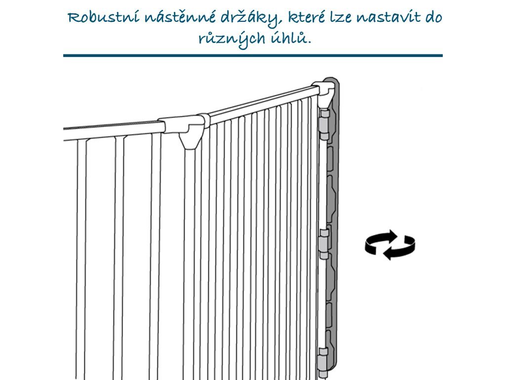 CombiFit XXL je navržen s ohledem na flexibilitu. Zábranu lze nastavit do různých úhlů, aby se přizpůsobila tvaru místnosti – ať už chcete tvar půlměsíce nebo mírně zakřivenou konstrukci. Máte volnost v umístění jednotlivých dílů tak, aby co nejlépe vyhovovaly vašemu prostoru. Zábranou můžete snadno projít pomocí širokých dveří, které lze otevřít z obou stran jednou rukou – užitečná funkce v uspěchaném životě. Díky svému flexibilnímu designu a robustní konstrukci je BabyDan CombiFit XXL spolehlivým řešením pro vytvoření bezpečného prostředí ve větších prostorách. Lze neomezeně prodlužovat pomocí libovolného počtu prodloužení (33 nebo 72 cm prodloužení se prodávají zvlášť)