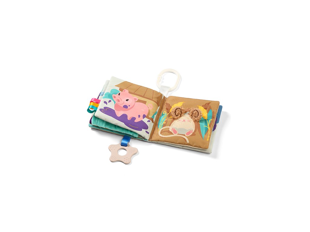 Měkká a barevná knížka je odpovědí na kognitivní potřeby Vašeho děťátka. Hračka bude provázet Vašeho prcka během jeho raných vývojových stadií a bude stimulovat růst jeho zrakových, sluchových a motorických koordinačních schopností. Pozorování zářivých barev a výrazných tvarů přinese miminku spoustu radosti a zapojí všechny jeho smysly. Knížka byla vyrobena z nejlepších bezpečných materiálů.