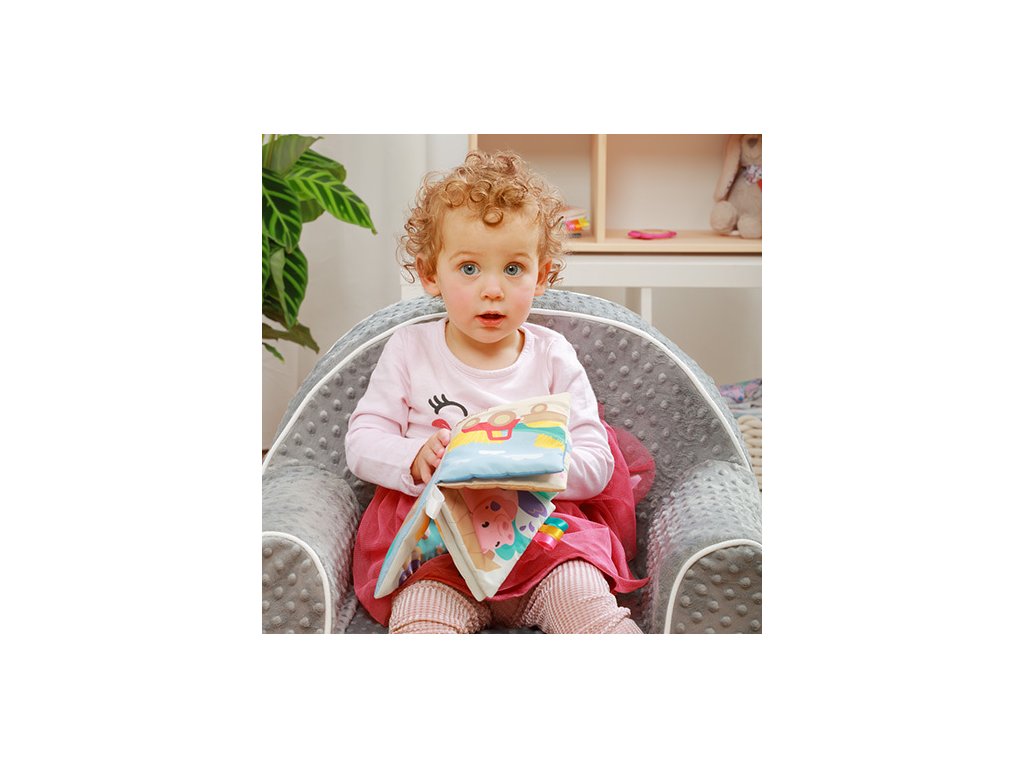 Knížka je vyrobena z materiálů různých textur a barev. Je nezbytná pro růst smyslů Vašeho prcka. Hračka také podporuje zrakovou, sluchovou a motorickou koordinaci.