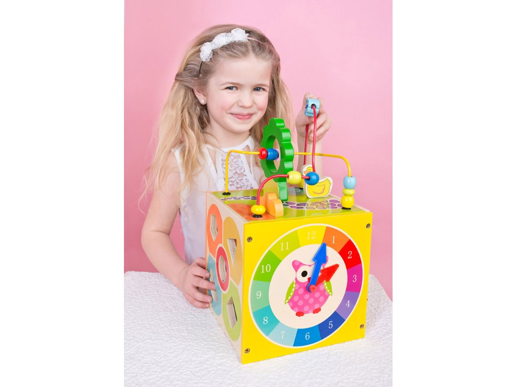 Multifunkční motorická kostka je kvalitní dřevěnou hračkou pro malé šikulky. Díky rozmanitým aktivitám, které mohou děti na každé stěně kostky plnit, procvičují jemnou motoriku ruky, logiku a soustředěnost.