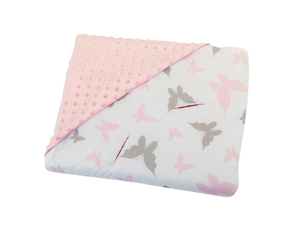 BOMIMI Zavinovací deka do autosedačky MINKY motýlci růžová
