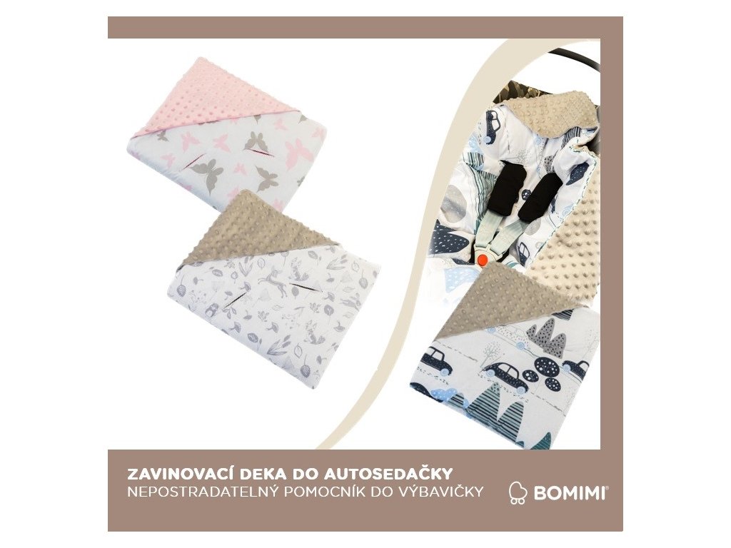 Dětská luxusní deka do autosedačky vyrobena z jedné strany ze 100% bavlny a z druhé z jemného, hřejivého a luxusního materiálu MINKY.