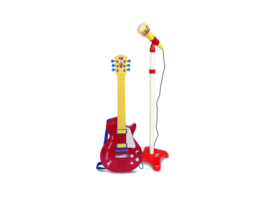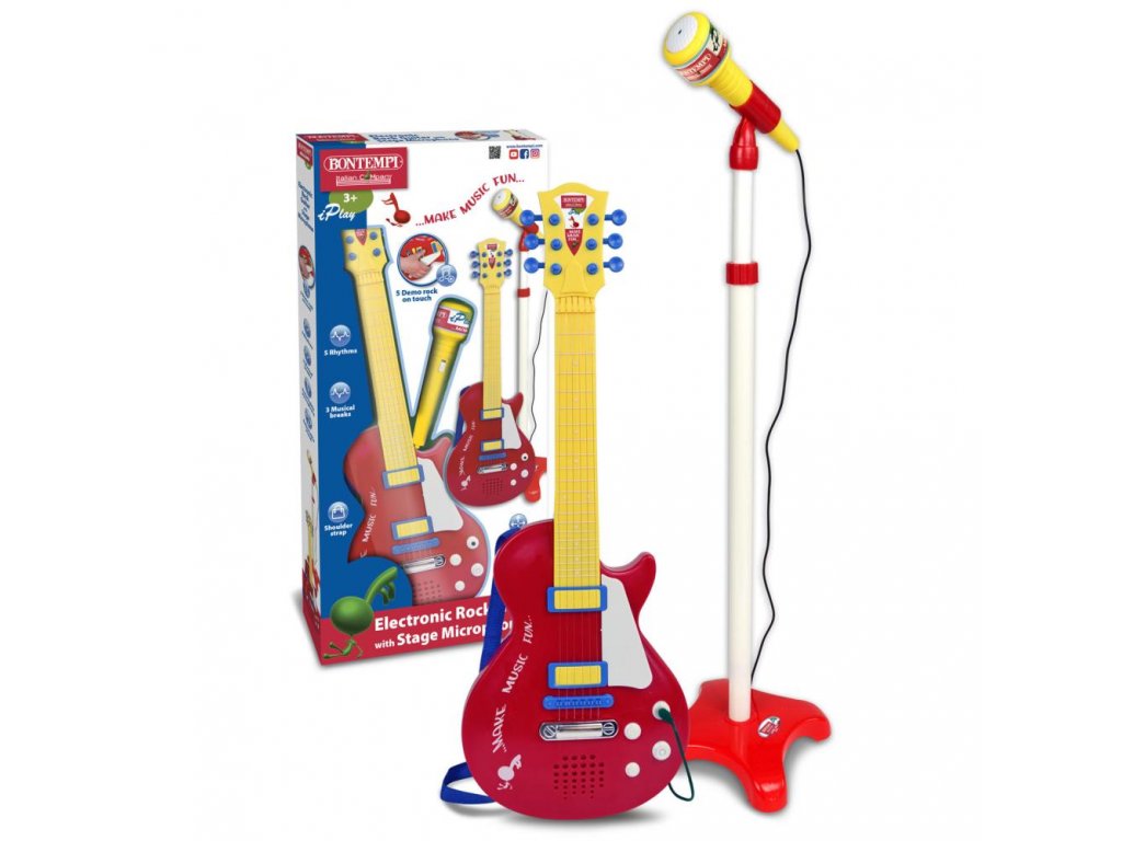 Elektronická rocková kytara se stojacím mikrofonem. Každé dítě může skvěle předvést své hudební schopnosti na této kytaře od Bontempi.