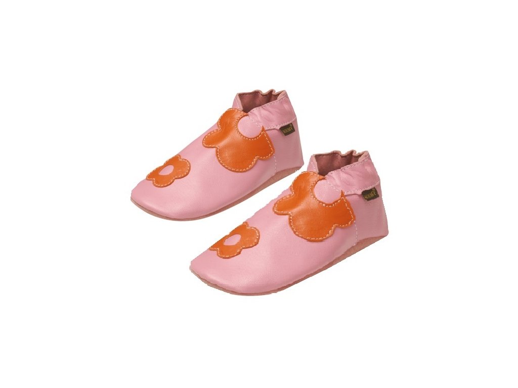 BOUMY BIG FLOWER PINK Kožené bačkůrky - capáčky velké Růžové vel. 26cm