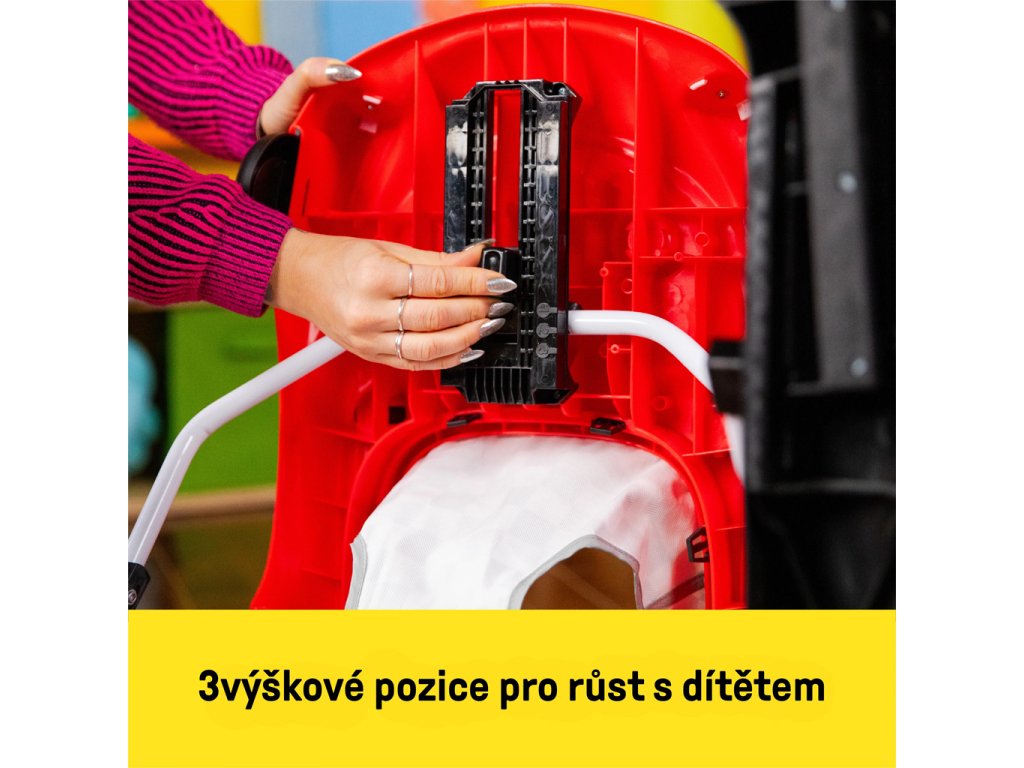 Zamilujete si 3 různé nastavitelné polohy výšky, bezpečnostní prvky a pohodlné skladování. Jednoduše položte naplocho, když se nepoužívá. Otřete dočista vlhkým hadříkem a jemným mýdlem, sedátko lze prát v pračce.