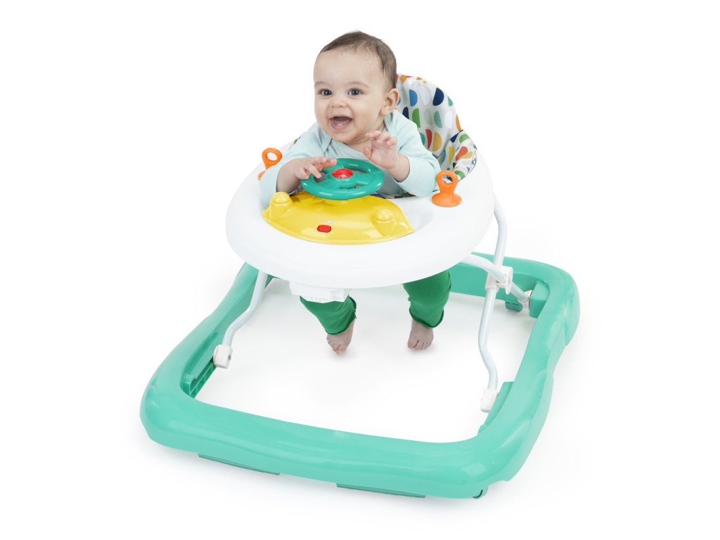 - Píp, píp! Bavte a rozvíjejte jemnou motoriku s volantem; 3 nastavitelné výšky pro růst dítěte od 6 do 12 měsíců nebo do hmotnosti 12kg; podporuje bezpečné objevování, když dítě pracuje na svých prvních krocích; odnímatelná hračkářská stanice může být využívána až do období batolete.