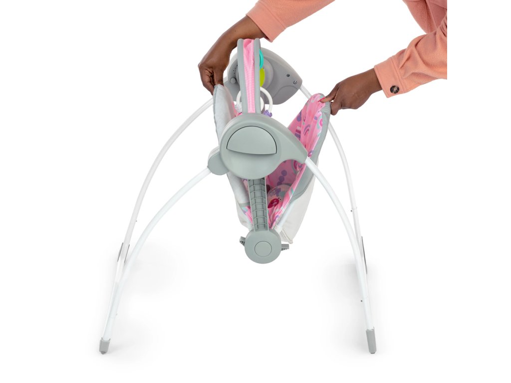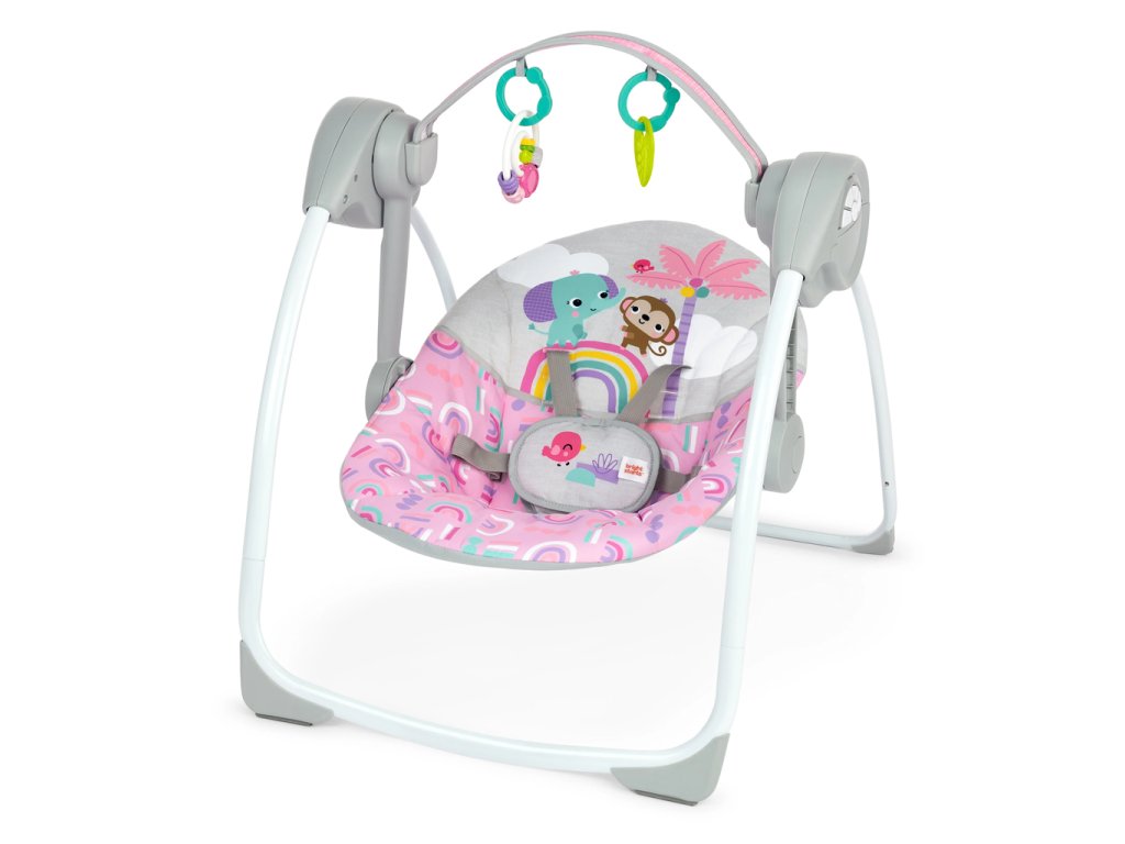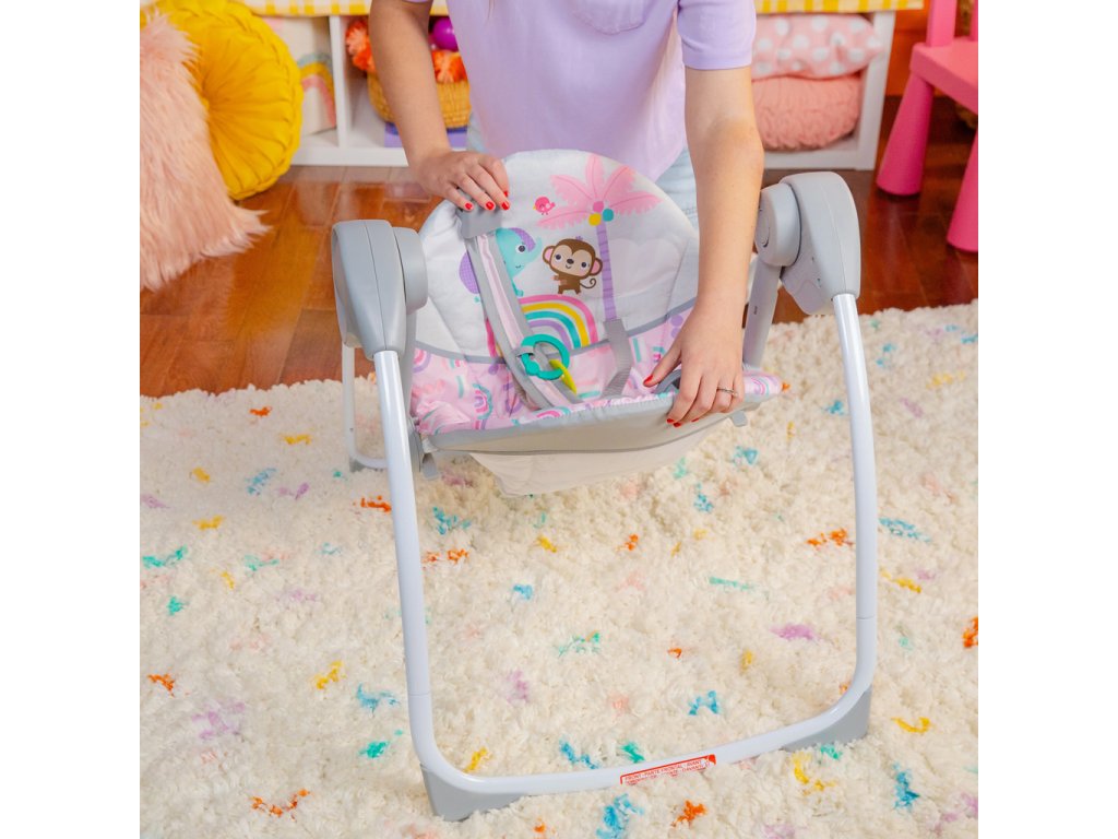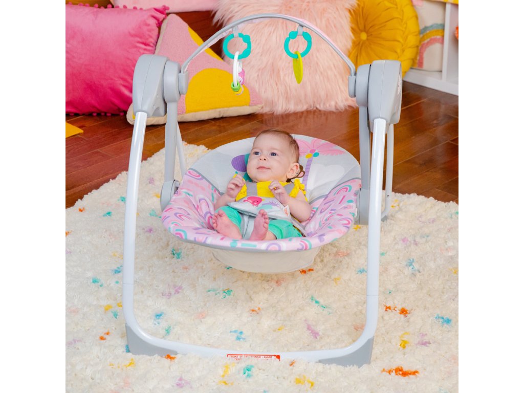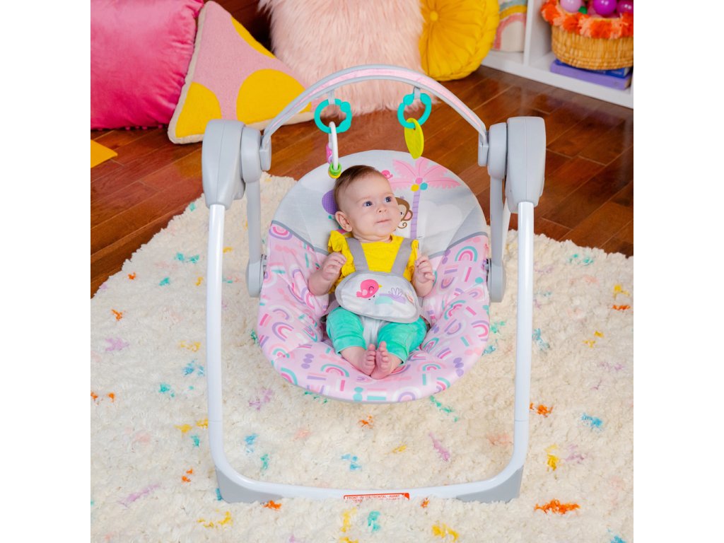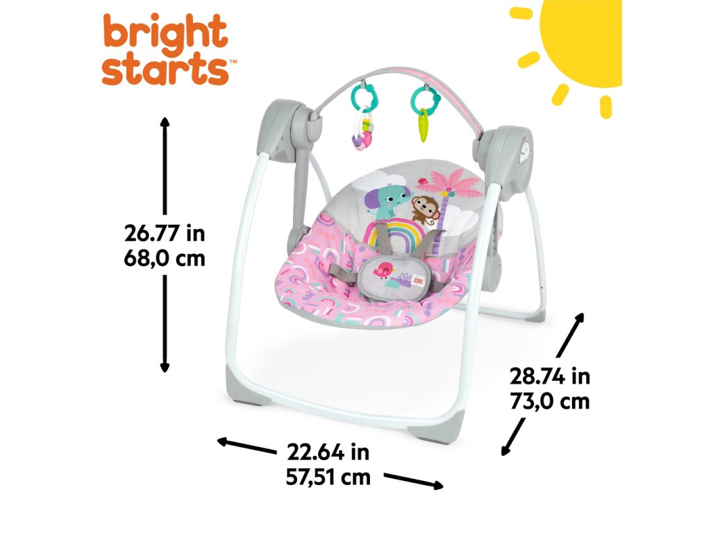 - Přenosná houpačka Bright Starts Pink Paradise má lehký a skládací design ideální pro skladování nebo cestování; snadno přenosná na cestách