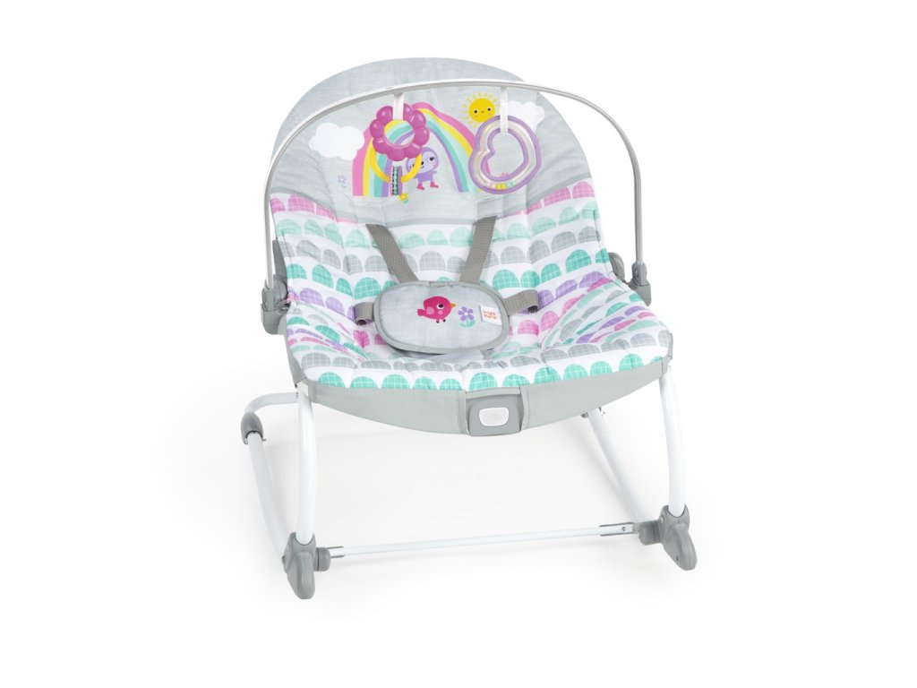 - Získejte roky používání s tímto multifunkčním houpátkem! Houpátko Bright Starts Rosy Rainbow pro kojence a batolata se mění z houpacího na stacionární sedátko a roste spolu s dítětem až do 18 kg. Přepínání z houpacího na stacionární sedátko se stabilizačním předním stojanem.