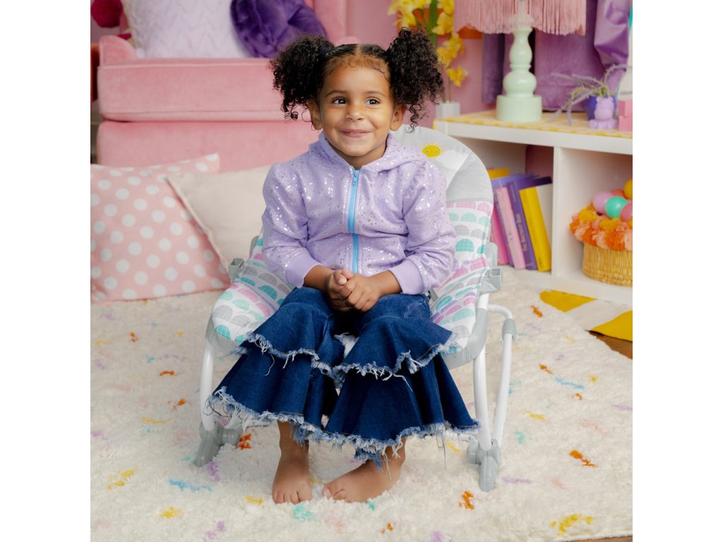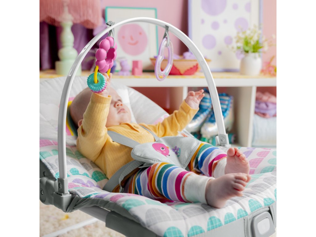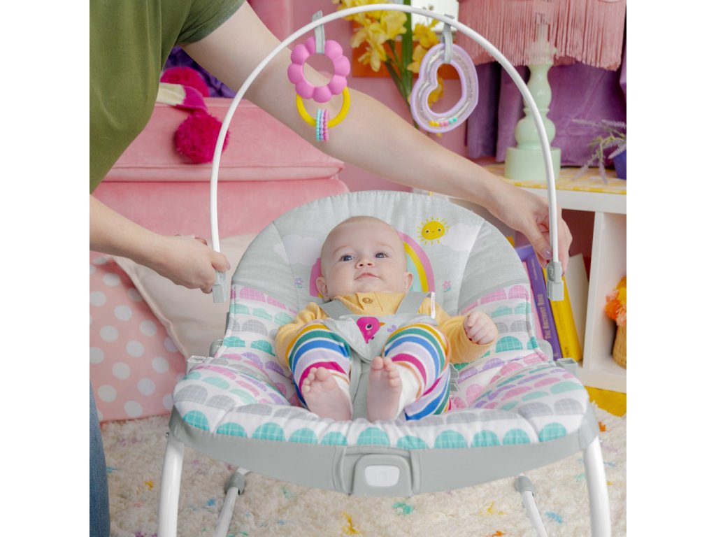Život s vaším děťátkem je s houpátkem Rosy Rainbow 2 v 1 od Bright Starts růžový, jak jen to jde. Toto sladké víceúčelové houpátko roste spolu s dítětem a je skvělé pro kojence i batolata! Dospělí mohou miminko uklidnit v režimu houpání, zatímco hrazdička s hračkami zabaví shora pomocí chrastítka ve tvaru srdíčka a hračky na honění korálků s květinkami. Vibrující sedátko pomáhá udržet dítě v klidu, zatímco vy máte volné ruce s dítětem na očích. Funkce vibrování jedním tlačítkem je zabudována v sedadle, takže vibrace můžete jednoduše zapnout nebo vypnout podle preferencí dítěte. Chcete-li sedadlo naklonit, použijte tlačítka pod hrazdičkou s hračkami na každé straně sedadla, která lze nastavit dopředu a dozadu. Pomocí předního nárazníku můžete plynule přepínat z houpacího na stacionární sedadlo. Když jste na cestách, jednoduše jej uchopte na každé straně a zvedněte, když dítě není v houpačce, abyste se mohli přesunout z místnosti do místnosti. Toto univerzální houpátko roste spolu s dítětem až do 18 kg, takže jej budete moci léta používat od houpacího křesla pro novorozence až po batole. Odnímatelnou podložku sedáku lze prát v pračce. Skvělý nápad na dárek na dětskou oslavu nebo příchod miminka!