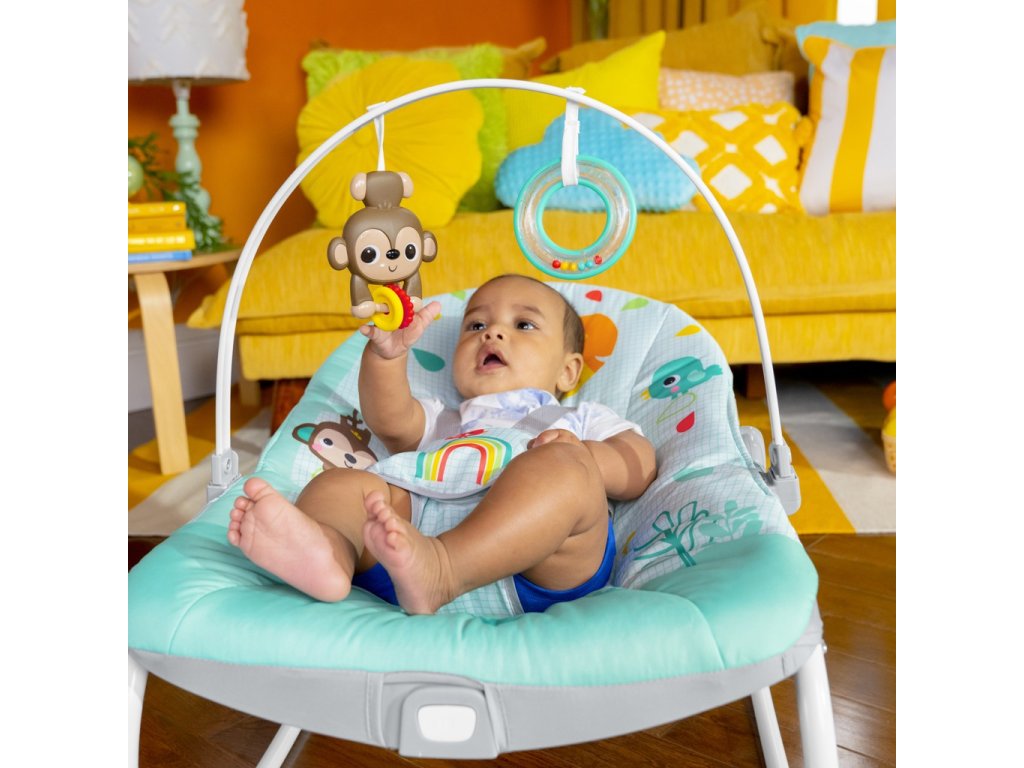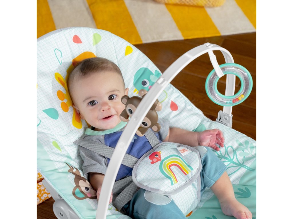 S houpacím a stacionárním sedadlem Wild Vibes 2 v 1 od Bright Starts se vaše divoké dítě dostane na uklidňující safari. Toto víceúčelové houpátko roste spolu s dítětem a je skvělé pro kojence i batolata! Dospělí mohou děťátko uklidnit v režimu houpání, zatímco hrazdička s hračkami zabaví barevným chrastítkem a hračkou na honění opičích korálků. Vibrující sedátko pomáhá udržet miminko v klidu, zatímco vy máte volné ruce s dítětem na očích. Funkce vibrování jedním tlačítkem je zabudována v sedadle, takže vibrace můžete jednoduše zapnout nebo vypnout podle preferencí dítěte. Chcete-li sedadlo naklonit, použijte tlačítka pod hrazdičkou s hračkami na každé straně sedadla, která lze nastavit dopředu a dozadu. Pomocí předního stojanu/konstrukce můžete plynule přepínat z houpacího na stacionární sedadlo. Když jste na cestách, jednoduše uchopte houpatko na každé straně, když dítě není v houpátku, abyste se mohli přesunout z místnosti do místnosti. Toto univerzální houpátko roste spolu s dítětem až do 18 kg, takže jej budete moci léta používat od houpacího křesílka pro novorozence až po batole. Odnímatelnou podložku sedáku lze prát v pračce. Skvělý nápad na dárek na dětskou oslavu nebo příchod miminka!