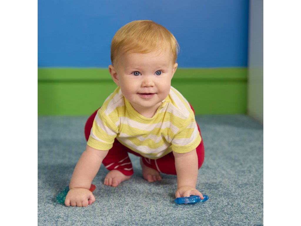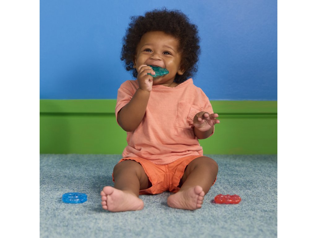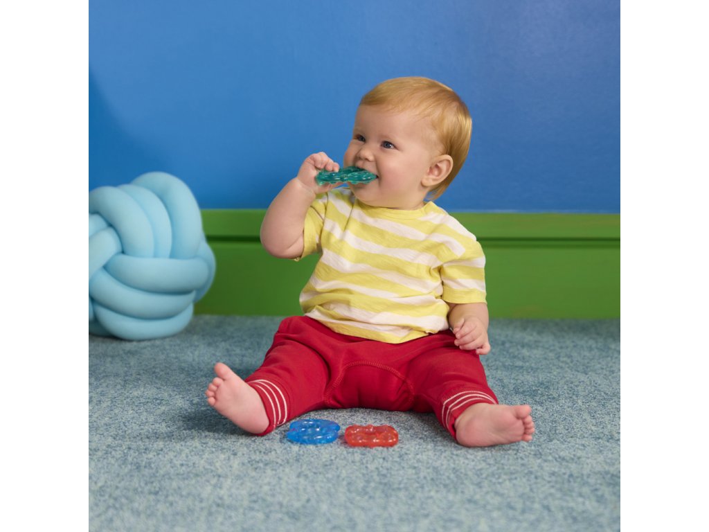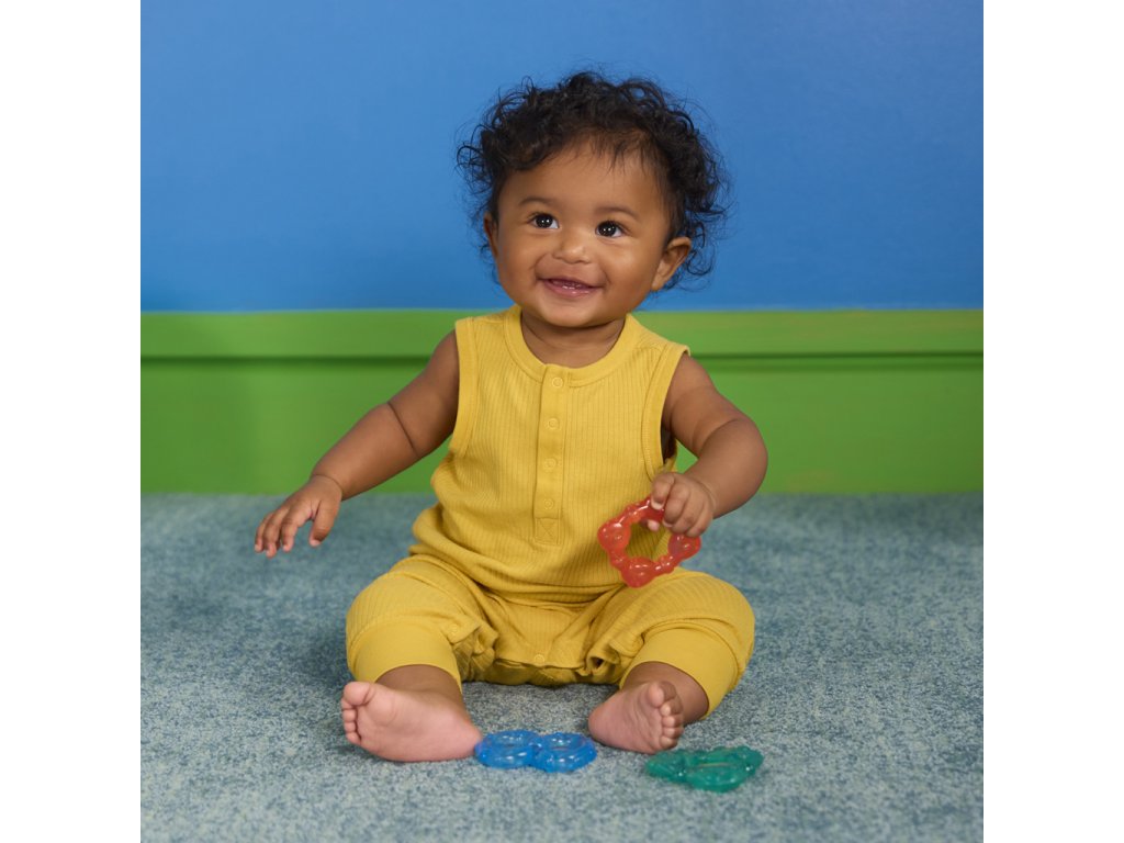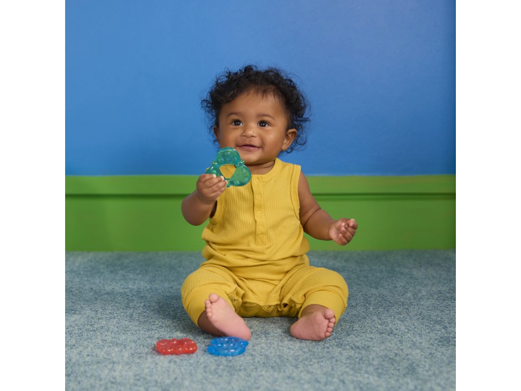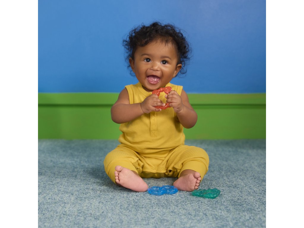 Ulevte svému miminku během prořezávání zoubků s chladivými kousátkami od Bright Starts. Každý ze tří barevných kroužků je naplněn čistou vodou, kterou můžete zchladit v chladničce pro extra úlevu. Kousátka mají různé textury a jsou navrženy pro snadné uchopení malými ručičkami, což podporuje rozvoj jemné motoriky a senzorické stimulace. Děťátko ohromí i zářivé barvy a kousátka nebsahují BPA, takže jsou mimořádně bezpečné pro vaše děťátko.