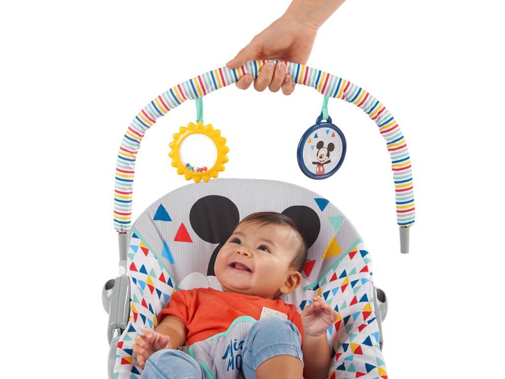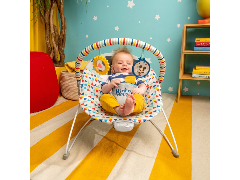 Kdo jiný dokáže lépe uklidnit miminko než ikonický kamarád Mickey Mouse? Toto dětské vibrační lehátko se stane tím „nejšťastnějším místem na Zemi“. Jeho hluboké, kolíbavé sedátko poskytuje extra pohodlí, takže se vaše děťátko může pohodlně uložit a odpočívat. Slyšeli jste blábolení nebo spokojené mumlání? To se miminko jen těší z uklidňujících vibrací tohoto vibračního lehátka.