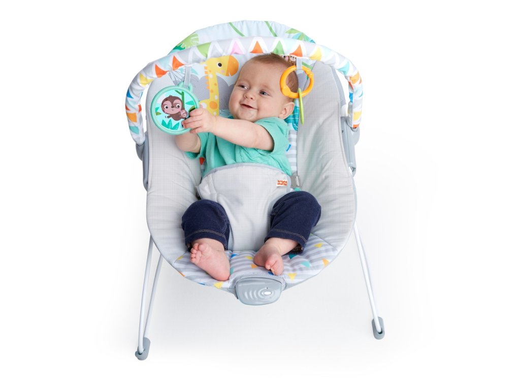 Zábava v plném proudu! Lehátko Safari Fun™ od značky Bright Starts představuje jedinečný prostor pro odpočinek a hraní s okouzlujícími interaktivními hračkami. Jemné a pohodlné tkaniny s veselými motivy zajistí, že děťátko se bude cítit příjemně a klidně. Odnímatelná hrazdička umožňuje rychlý přístup k děťátku. Uklidňující vibrace pomáhají děťátko udržovat šťastné a spokojené. Lehátko má jednoduchou montáž, nepotřebujete žádné nástroje. Rovněž obsahuje 3-bodový nastavitelný bezpečnostní pás a protiskluzové nožičky. Sedací část se snadno udržuje v čistotě, možnost prát v pračce.