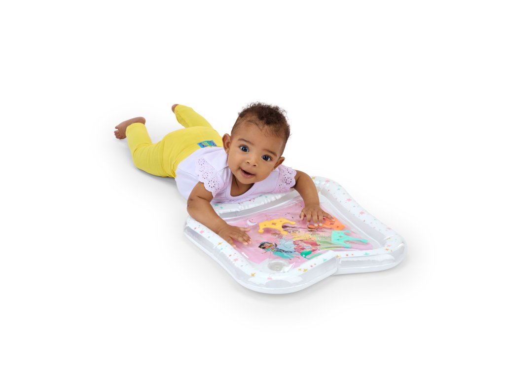 Přivítejte malé princezny do světa zábavy s okouzlující vodní podložkou Disney Princess. Tato hravá a praktická podložka přemění klasickou dobu trénování na bříšku na zábavné a podnětné dobrodružství. Tři plovoucí korunky se vznášejí uvnitř podložky, čímž stimulují zrak, dotek a koordinaci již od nejútlejšího věku. Vodní podložka s Disney princeznami je originální a praktický dárek, který rozzáří oči každé malé princezně – a ušetří rodičům úklid po hraní s vodou! Vlastnosti: - Zábavné objevování během hry na bříšku - podporuje posilování krku a zad u nejmenších - 3 plovoucí hračky ve tvaru korunky – podporují zrakovou a senzorickou stimulaci - Jednoduché použití - stačí naplnit vodou a 1 lžící octa, vyprázdnění je rychlé a snadné stisknutím - Vhodná na doma i na cesty – lehká, skladná a přenosná; ideální na dovolené či návštěvy - Snadno se čistí – jednoduše otřete vlhkým hadříkem a jemným mýdlem - Bezpečný a kvalitní materiál – odolný vůči přetečení a navržený pro malé dětské ručičky - Téma: oblíbené Disney princezny – ideální pro každou malou fanynku Materiál: – 85% vinyl a 15% plast. Věkové rozpětí: 0 - 36 měsíců Rozměry produktu: 3,8 cm x 40,6 cm x 40,6 cm Důležité: Před předáním výrobku dítěti odstraňte veškerý obal a upevňovací prvky. Tento obal a návod k použití si uschovejte pro budoucí použití – obsahují důležité informace. V rámci neustálého procesu zlepšování a inovace naše výrobky průběžně aktualizujeme. Adresa dodavatele: KIDS2 EUROPE BV 5 Keizersgracht 287, 1016 ED Amsterdam, Netherlands; +31 20 241 0934.