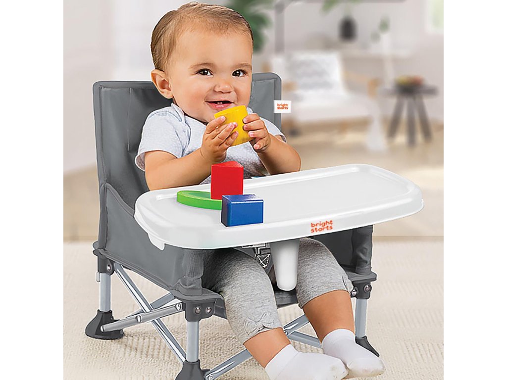 S prodanými více než 2 miliony kusů se originální přenosná jídelní židle Pop ‘N Sit přidává do kolekce produktů Bright Starts, aby pomáhala rodinám nacházet více radosti v každém okamžiku.Od miminka po batole, od jídla po hraní – tato multifunkční cestovní židle poskytuje vašemu dítěti bezpečné místo k sezení. Tato jednička od výrobce 1 v kategorii jídelních židlí nabízí 3 režimy používání: podlahová židle pro miminka, jídelní židle s odnímatelným pultíkem a podsedák pro batolata. Pro nejmenší ji můžete připevnit na jídelní židličku pro dospělé pomocí přiložených popruhů a BPA free pultíku a vytvořit tak přenosnou vysokou židličku. Pro starší děti lze pultík odebrat a použít židli jako podsedák u stolu. V podlahovém režimu můžete Pop ‘N Sit využít kdykoli potřebujete další sedadlo – na piknicích, sportovních akcích nebo doma! Zadní kapsa slouží k uložení každodenních nezbytností. Po použití se jednoduše složí do kompaktního rozměru a uloží do přenosné tašky s ramenním popruhem a další kapsou. Pultík je vhodný do myčky a potah sedáku lze prát v pračce. Neutrální šedé barevné provedení. Testováno a schváleno nezávislou certifikací.Funkce- Bright Starts Pop ‘N Sit je dokonalá židle, která roste s dítětem! 3 režimy: podlahová židle, jídelní židle s odnímatelným pultíkem a podsedák pro batolata;- Bezpečná pro vnitřní i vnější použití. Vezměte ji s sebou na piknik, kempování nebo na návštěvu k prarodičům;- Kompaktní skládání na rozměry 13 x 38 cm; snadno se čistí – pultík vhodný do myčky nádobí a potah sedadla pratelný v pračce;- Neutrální šedé barevné provedení; obsahuje 3-bodový bezpečnostní pás, pultík a bezpečnostní popruhy pro upevnění ke židli pro dospělé- Nezbytná pomůcka pro aktivní rodiče, prarodiče a další!- Složení materiálu 60% kov, 29% plast, 11% polyester- Věková skupina 6 – 36 měsíců nebo do 15 kg- Rozměry po sestavení (cm) 37,0 cm (V) x 39,0 cm (Š) x 39,0 cm (D)Důležité: Před odevzdáním výrobku dítěti odstraňte veškerý obalový materiál a upevňovací prvky.Adresa dodavatele: KIDS2 EUROPE BV 5 Keizersgracht 287, 1016 ED Amsterdam, Netherlands;Doplňkové parametry
