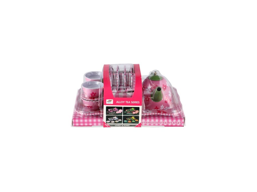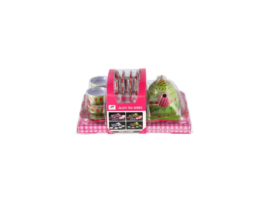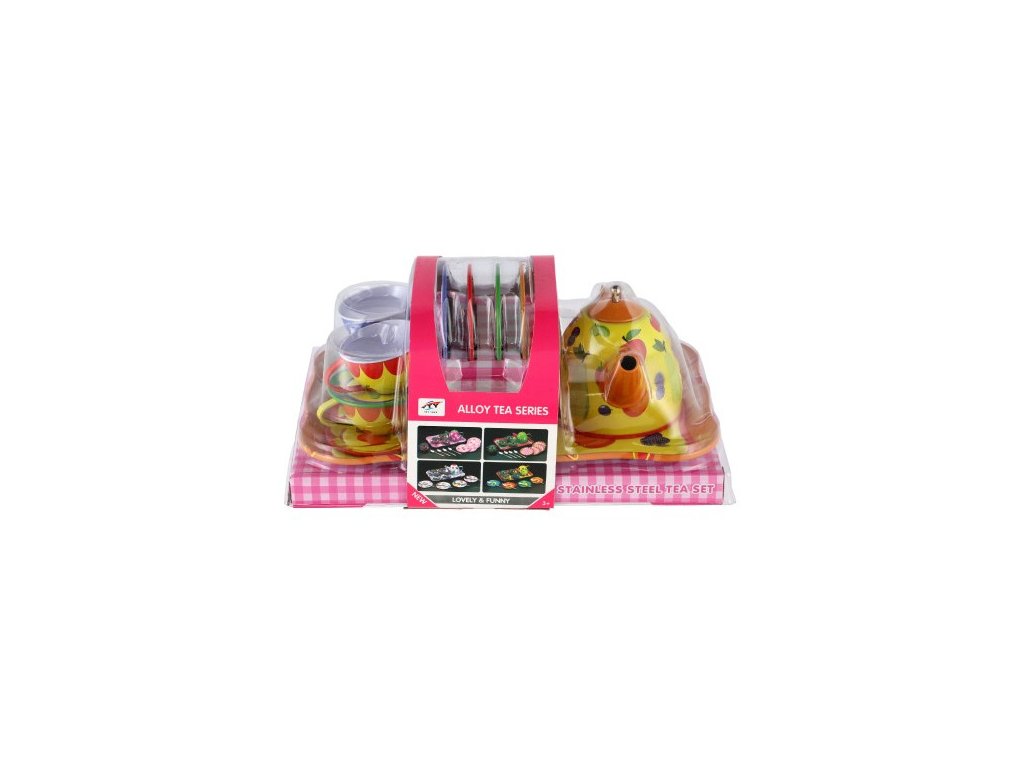 Čajová sada nádobí plech 14 ks mix barvy v balení 25x17x11cm