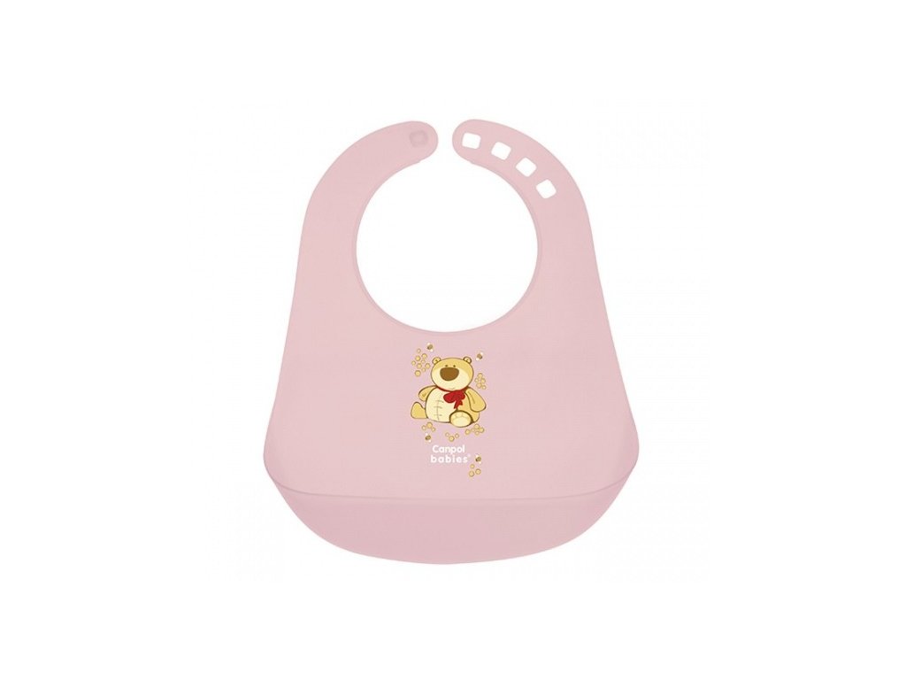 CANPOL BABIES 2/404 Plastový bryndák Happy Animals MÉĎA - růžový