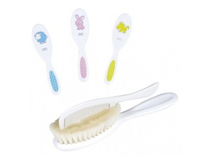 Sada pro péči o vlasy obsahuje hřeben se zakulacenými zoubky a kartáč s měkkým umělým vlasem. Kartáč jemně masíruje pokožku hlavy dítěte, podporuje její prokrvení a tak posiluje vlasy.