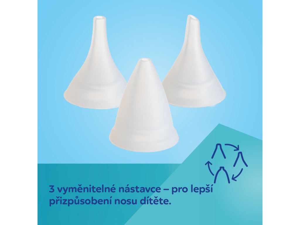 3 vyměnitelné nástavce – pro lepší přizpůsobení nosu dítěte.