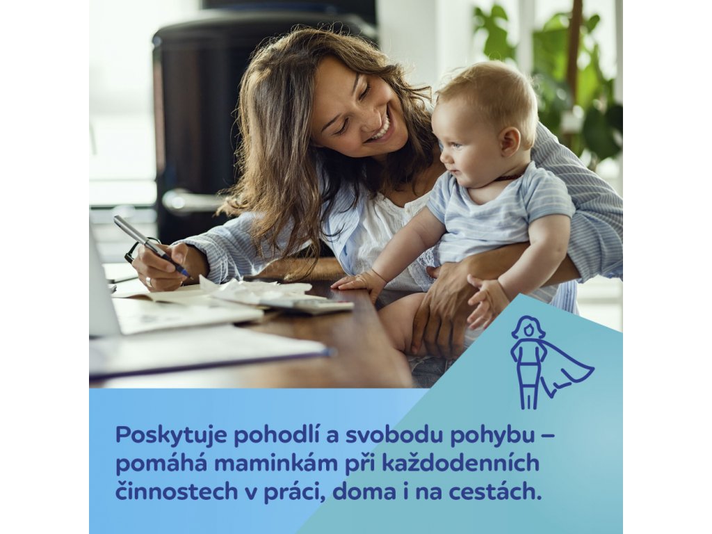 Spojuje pohodlí s flexibilitou – pomáhá mamince při každodeních činnostech doma, v práci nebo na cestách.