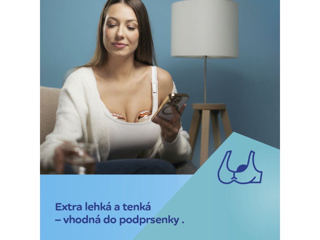 Elektrická odsávačka mateřského mléka Hands-free je diskrétní a tichá – max. 50 decibelů* v nejintenzivnějším režimu, který vám umožní odsát mléko, ať jste kdekoli, dokonce i v noci.