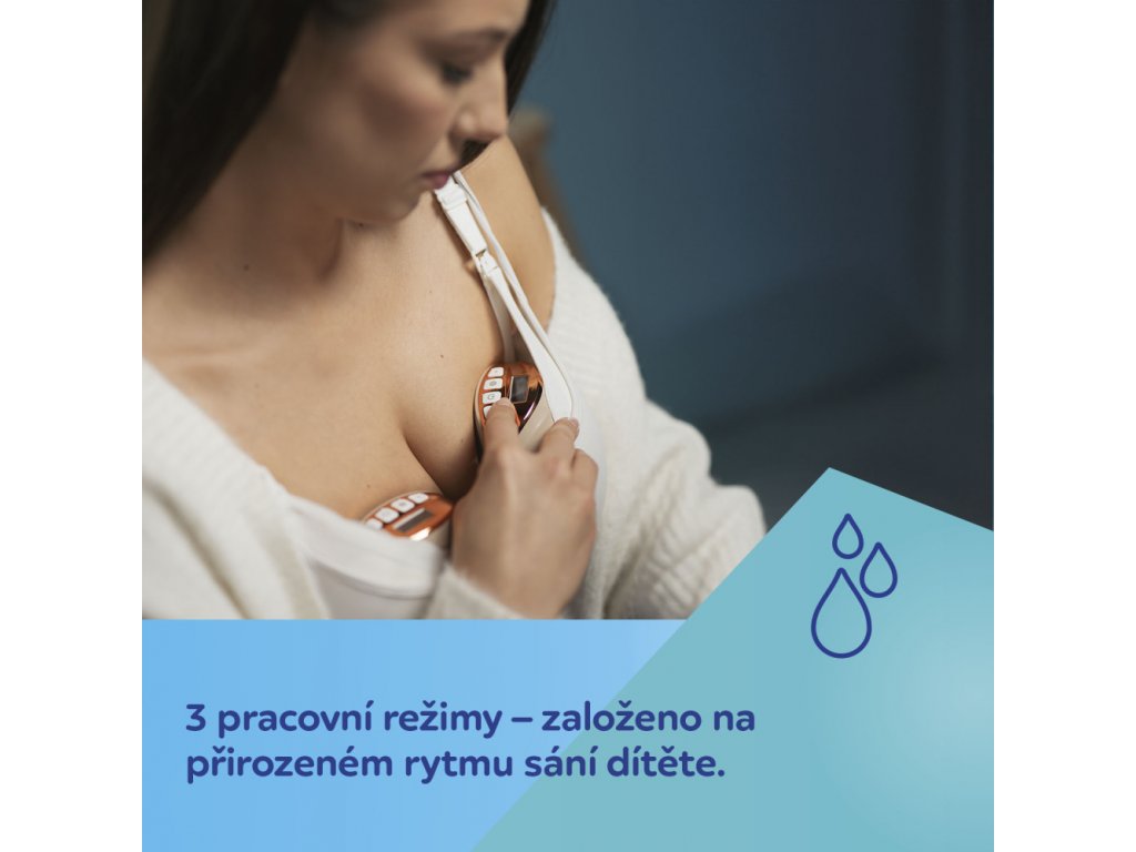 Odsávačka mateřského mléka má tři provozní režimy založené na přirozeném sacím rytmu dítěte – nejprve rychlé a mělké pohyby stimulují prso k odsávání mléka a poté se přepne do režimu pomalejšího odsávání. Třetí režim sání mléka je nejvýkonnější režim s dlouhými a hlubokými pohyby. Odsávačka mateřského mléka má 8-stupňový rozsah nastavení sacího výkonu v každém režimu, který umožňuje přizpůsobit výkon individuálním preferencím každé maminky, takže odsávání mléka není bolestivé.
