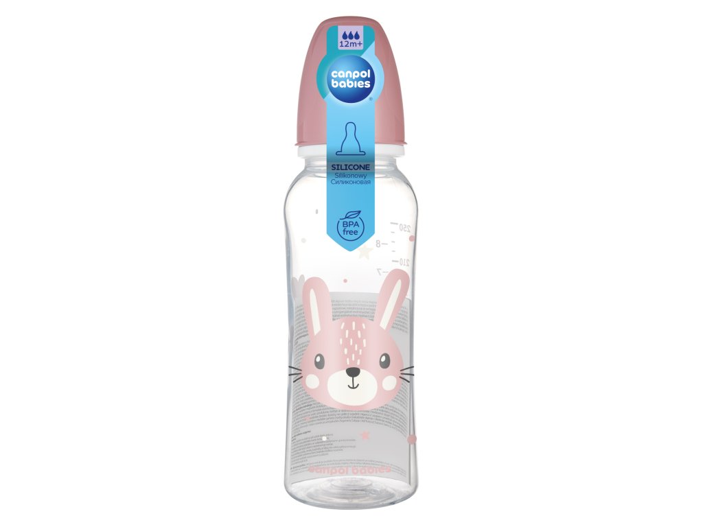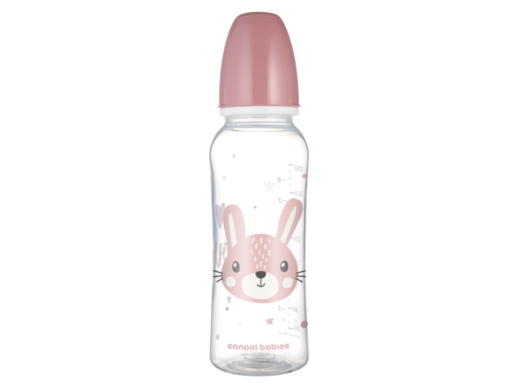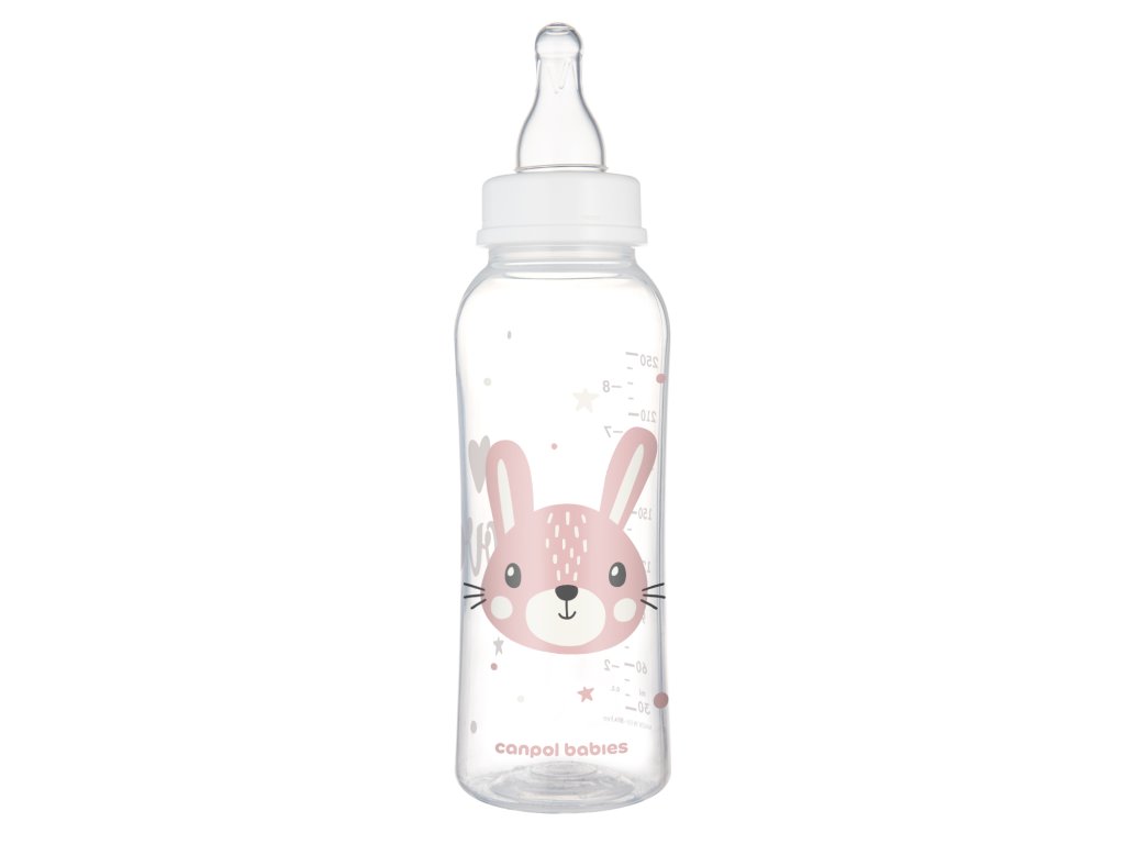 Canpol babies Lahev s potiskem CUTE ANIMALS 250ml pink - ZAJÍC růžová