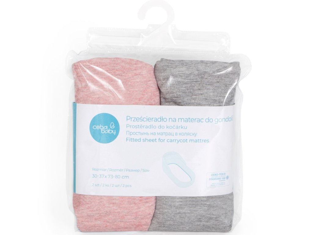 CEBA BABY Prostěradlo do kočárku 80x40cm 2ks: Light GREY + PINK