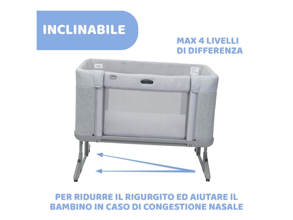 Postýlku lze naklonit pro zvýšení pohodlí dítěte v případě nachlazení nebo zvracení, čímž se dosáhne antirefluxního účinku.