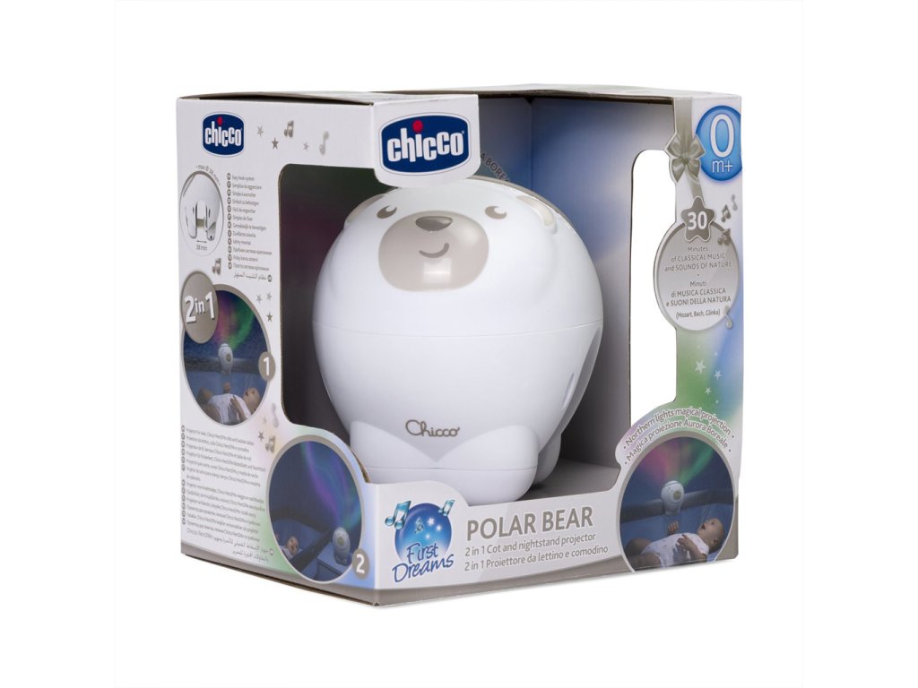 Projektor do postýlky a k postýlce 2v1 s magickou projekcí polární záře a klasické hudby je ideální společník při rituálu uspávání a spánku děťátka. Navíc je v roztomilém designu polárního medvěda.