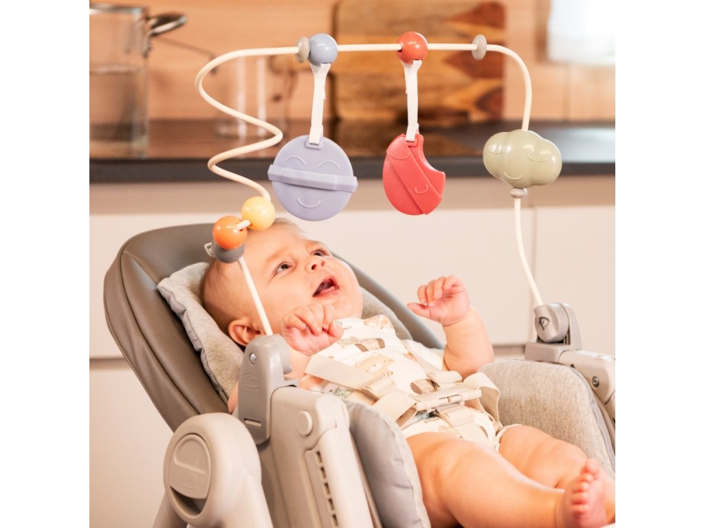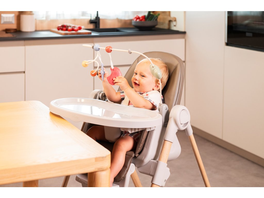 CHICCO Židlička jídelní Polly Armonia - Mother Pearl + Hrazdička Rainbow
