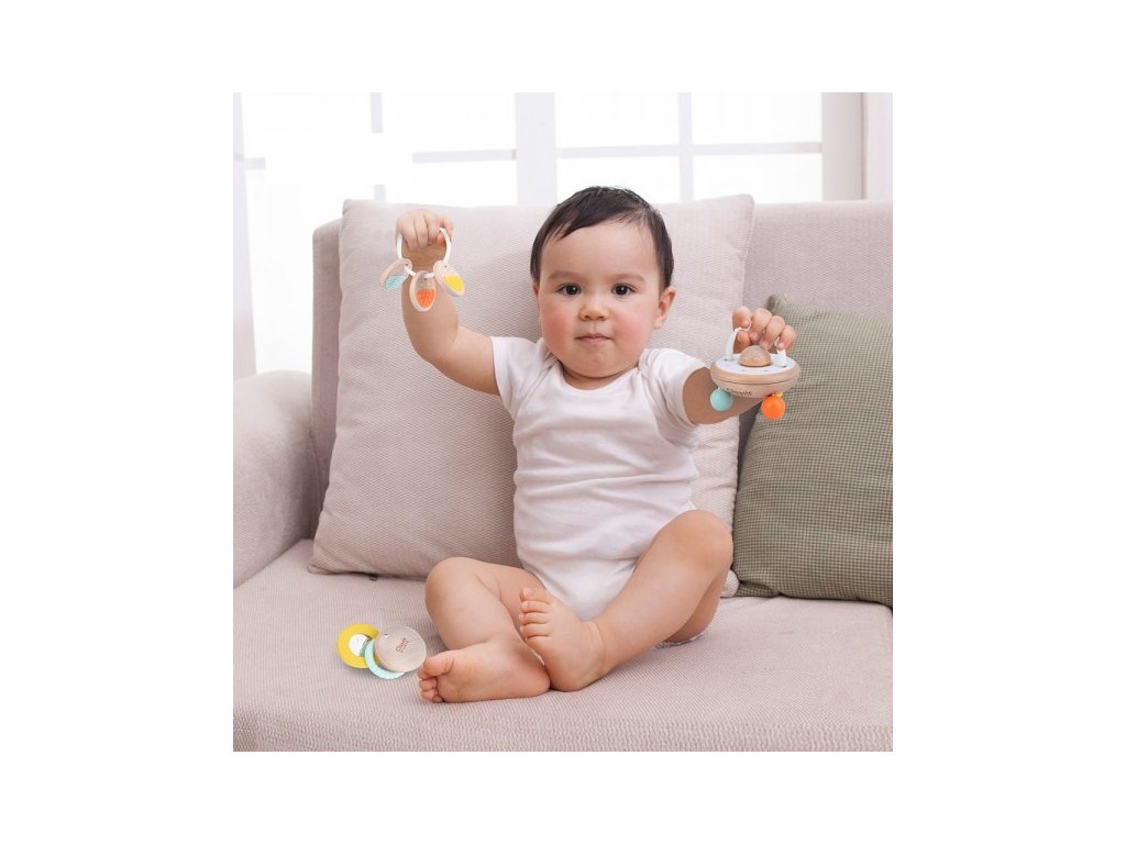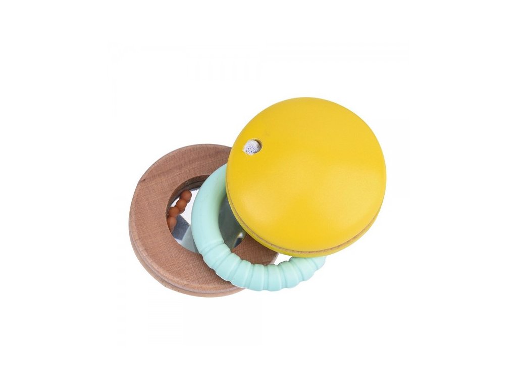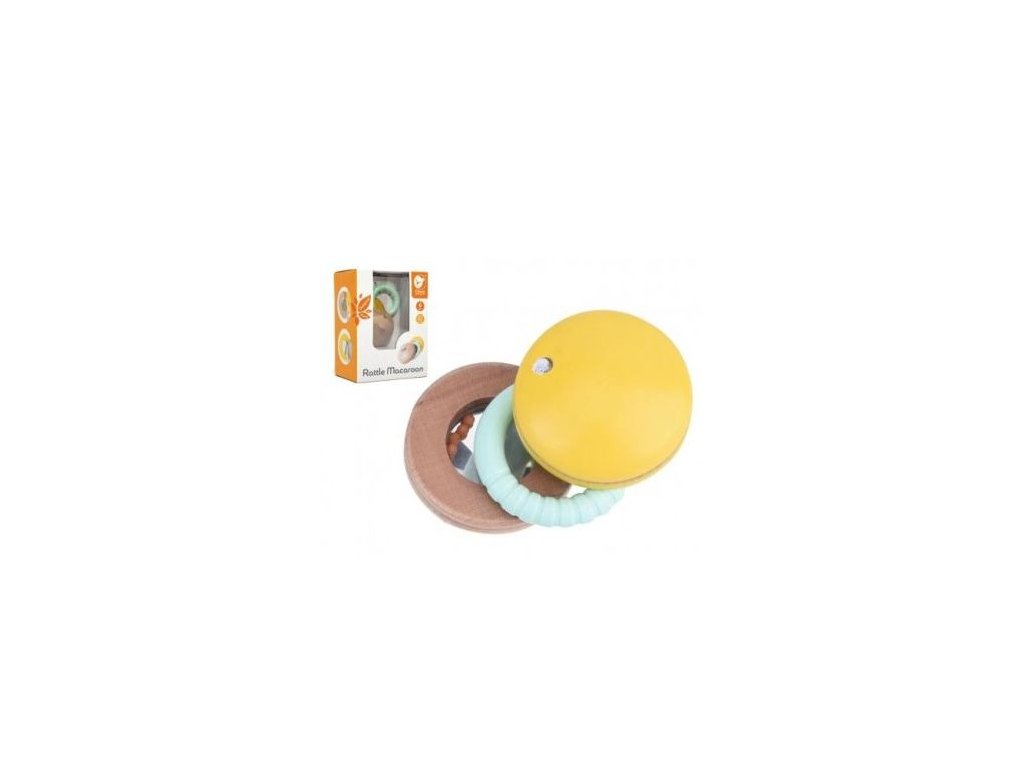 Dřevěné chrastítko pro vaš nejmenší v podobě sladké makronky. Uvnitř je ukryto i malé zrcátko. Chrastítko má nízkou hmotnost a je vhodné pro děti od 6ti měsíců. Hračka podporuje rozvoj motorických schopností u dětí a navíc napomáhá budování vztahu k přírodním materiálům a kreativitě.