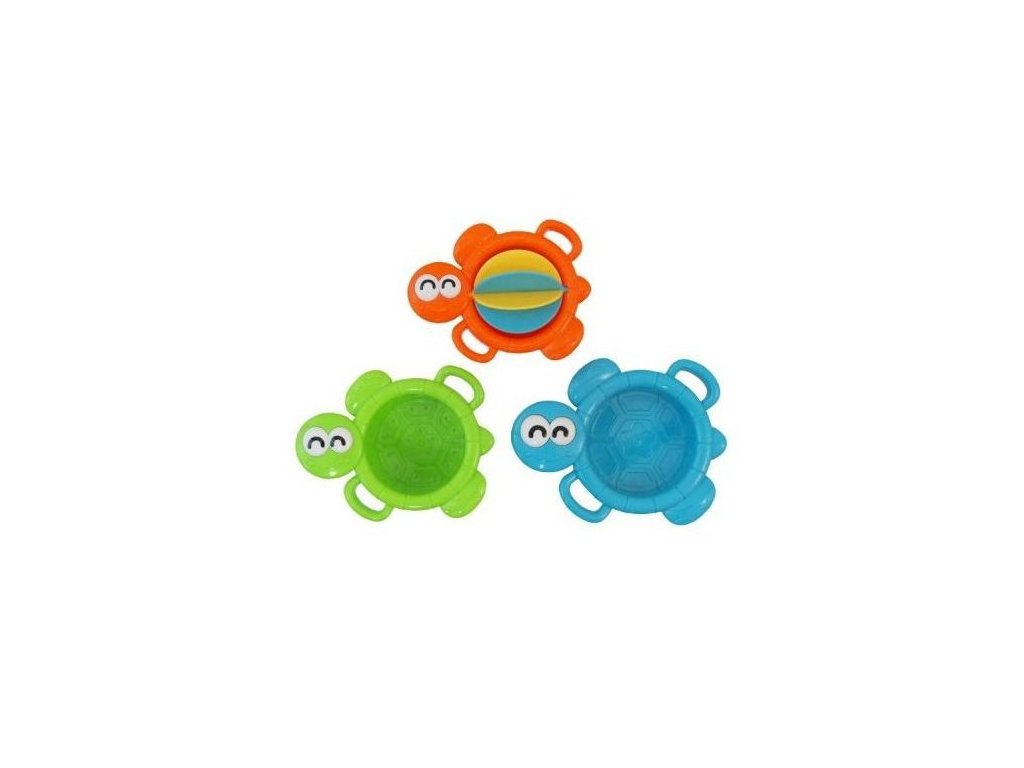 Sada barevných kelímků originálního tvaru přinese vašemu dítěti spoustu zábavy při hraní ve vodě během koupele ve vaně i v bazénku. Kelímky jsou ve tvaru želviček, součástí nejmenší je vodní mlýnek.