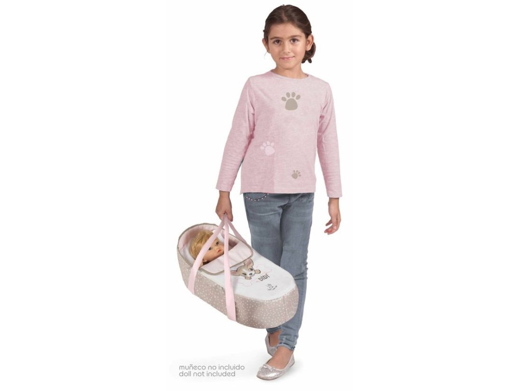 • Přenosná taška na panenku s vyšívaným motivem štěňátka DIDI na bílé sametové části a s pohyblivým štítem proti ofouknutí panenky