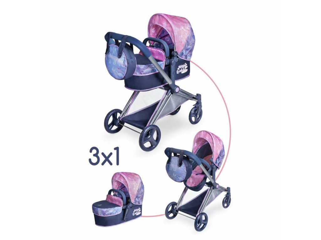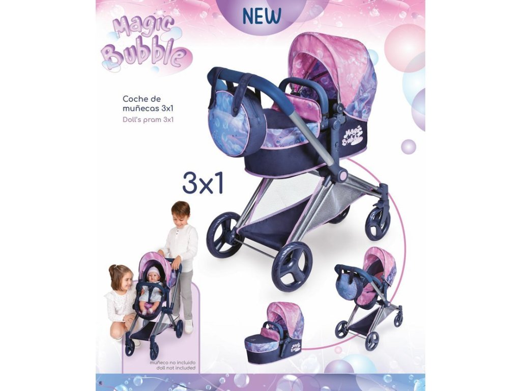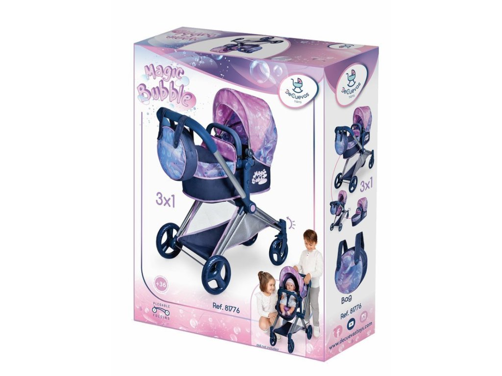 DeCuevas 81776 Skládací kočárek pro panenky 3 v 1 s taškou Magic Bubble 73 cm