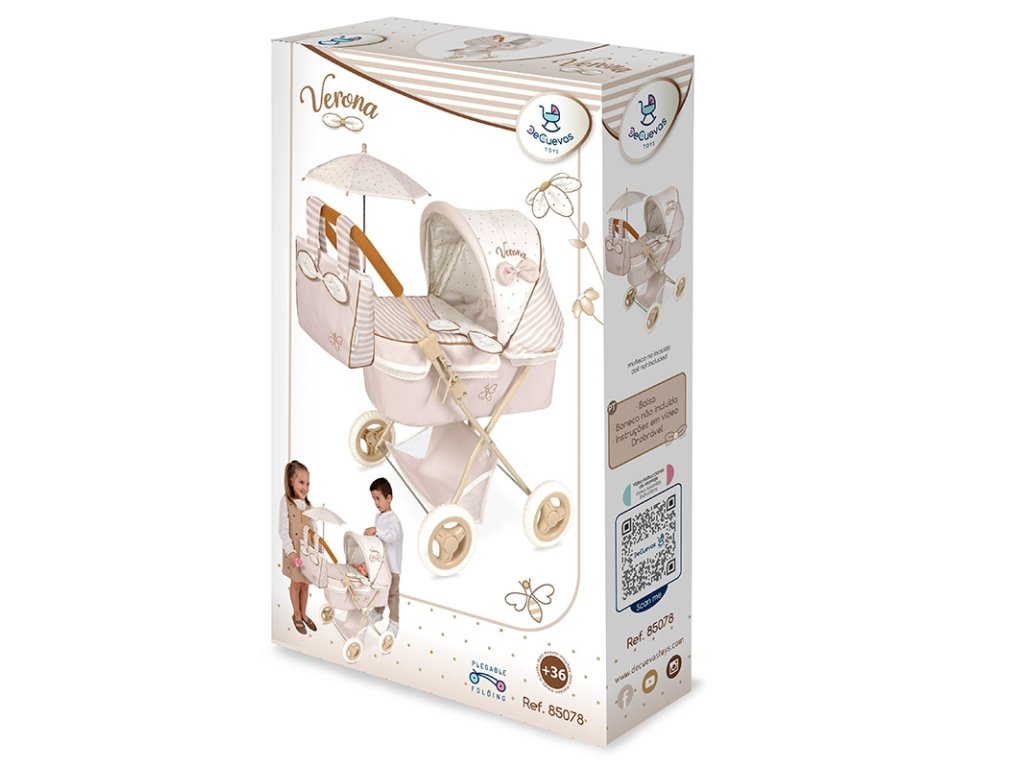 Kočárek se vyznačuje charakteristickými barvami nové řady Verona a obsahuje praktické příslušenství, jako je deštník, taška, spodní polička a mnoho dalších překvapení. Neváhejte a darujte kočárek DeCuevas, autentické klenoty navržené ve Španělsku s detaily, které připomínají skutečné dětské kočárky.